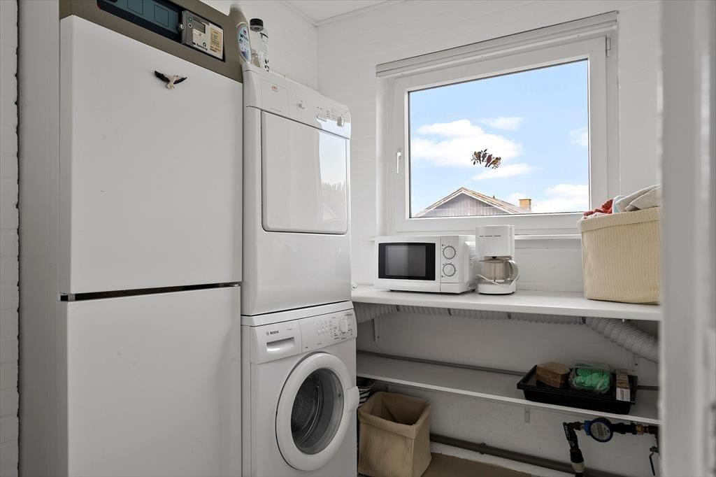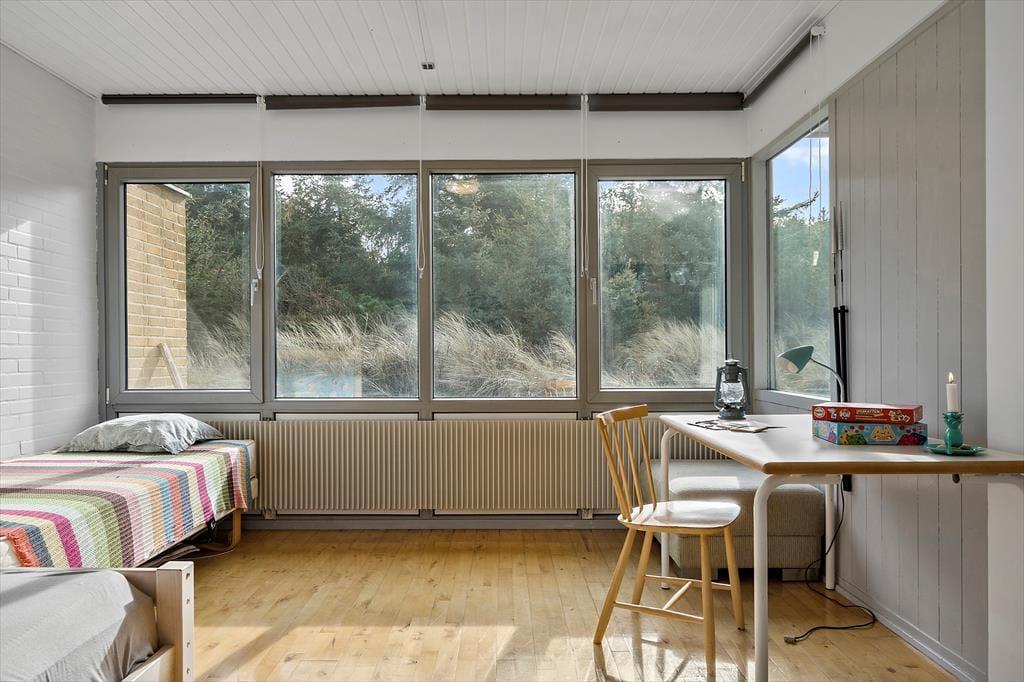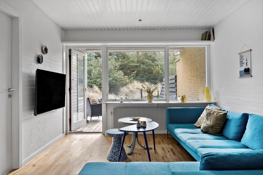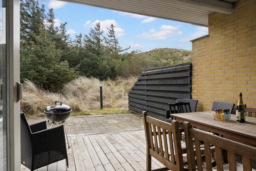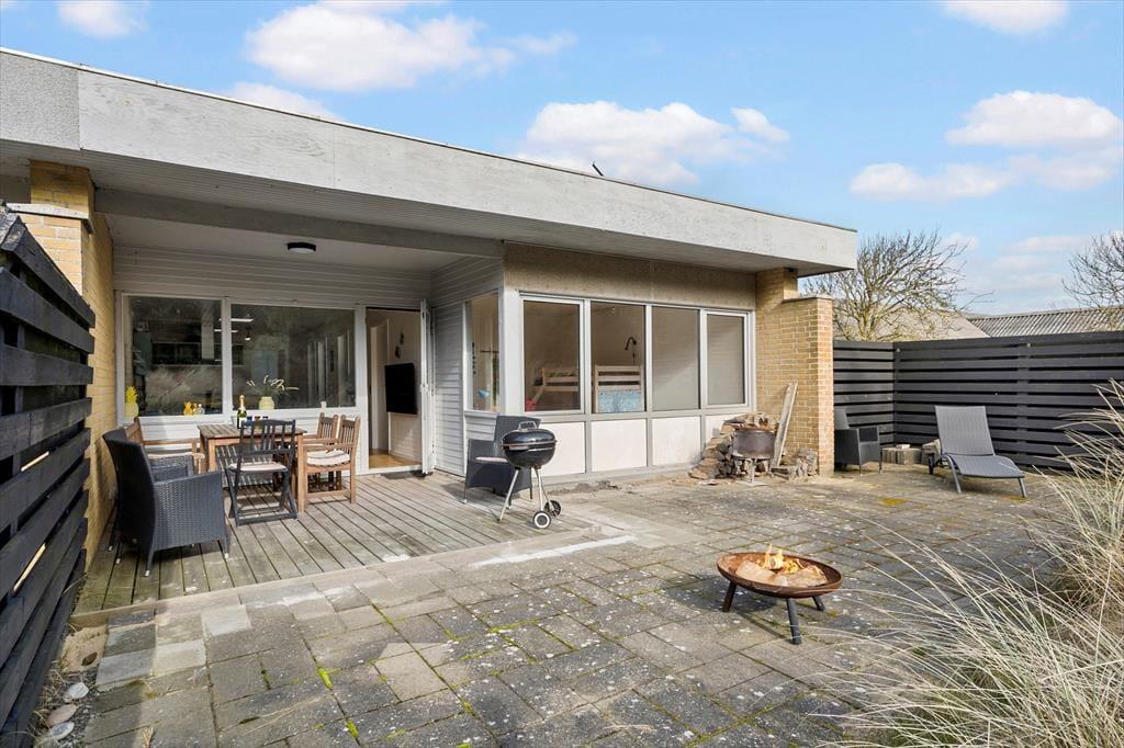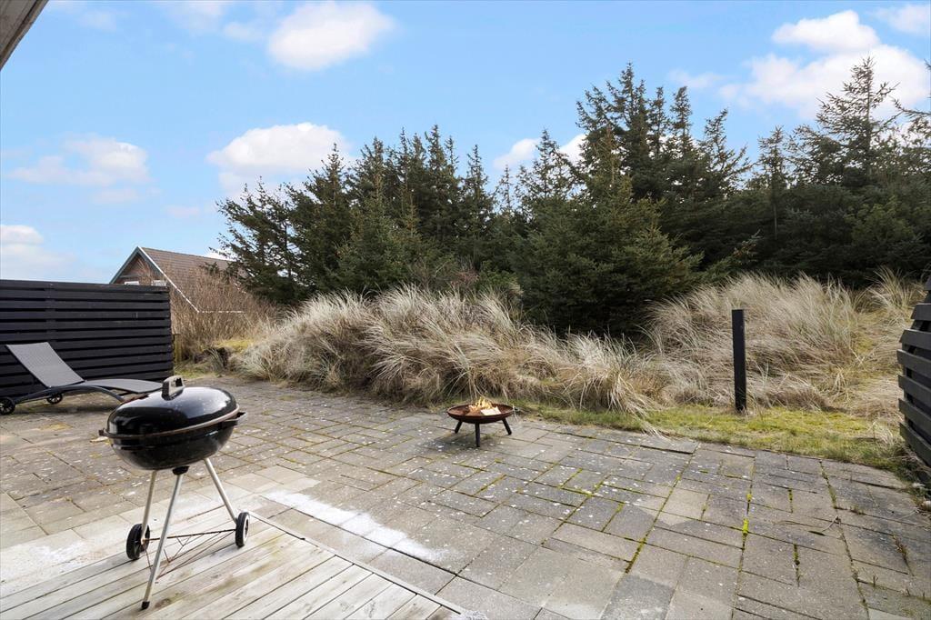 Sommerhusets terrasse er en dejlig oase, hvor du kan nyde dagens måltider i det fri eller slappe af med en kop kaffe i morgensolen. Den lukkede vej skaber en fredelig ramme om dit udeliv, og du kan trygt lade børnene lege uden bekymringer. Duften af saltvand ligger i luften, og lyden af mågerne minder dig om, at havet er lige i nærheden – perfekt til en spontan gåtur i klitterne eller en dukkert i Vesterhavet. Efter en dag med sand mellem tæerne er det rart at kunne trække sig tilbage på terrassen og lade dagens oplevelser bundfælde sig i ro og mag.