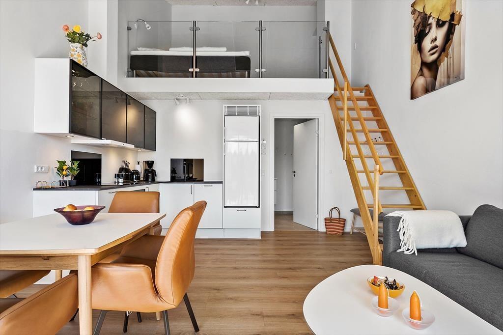 Lækker nybygget ferielejlighed til 2 personer med fjordudsigt midt i Hvide Sande og tæt på Vesterhavet og attraktiv lystfiskerplads.