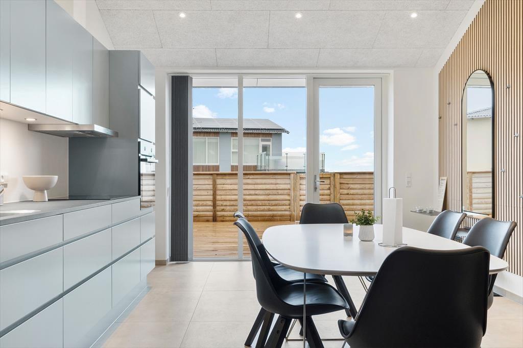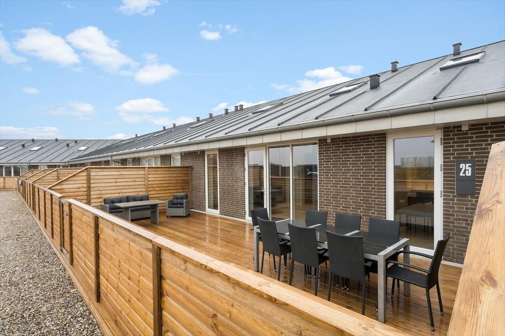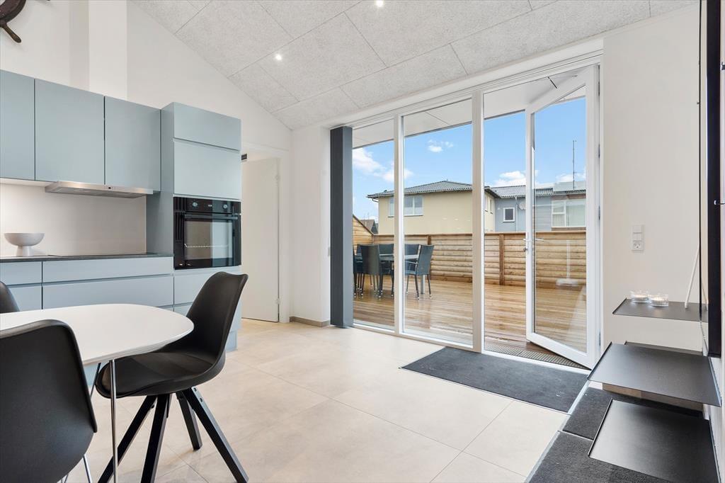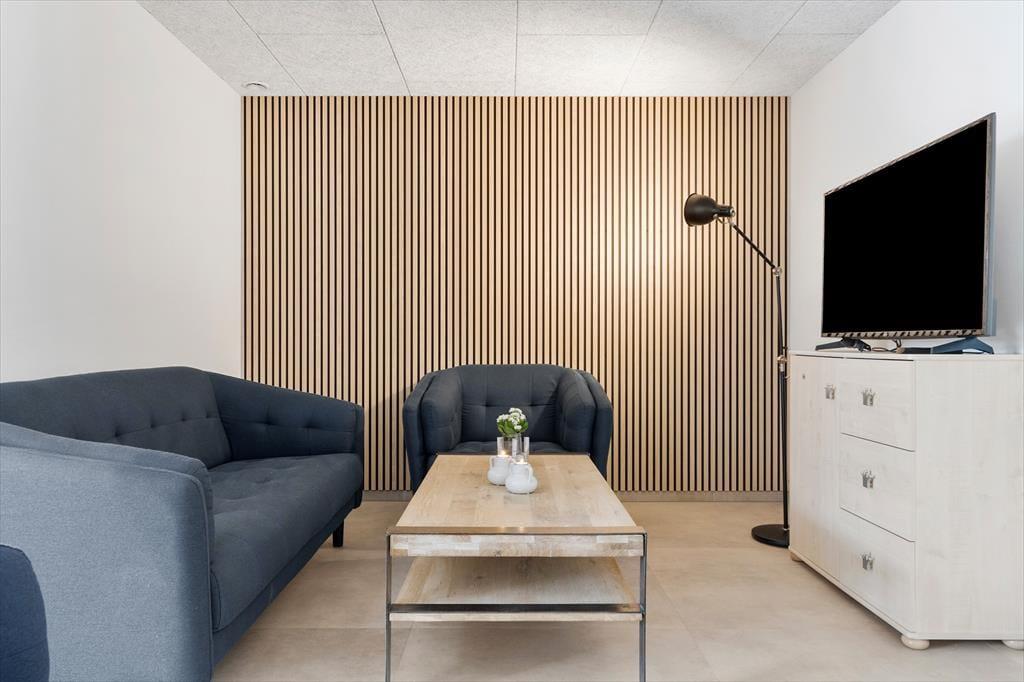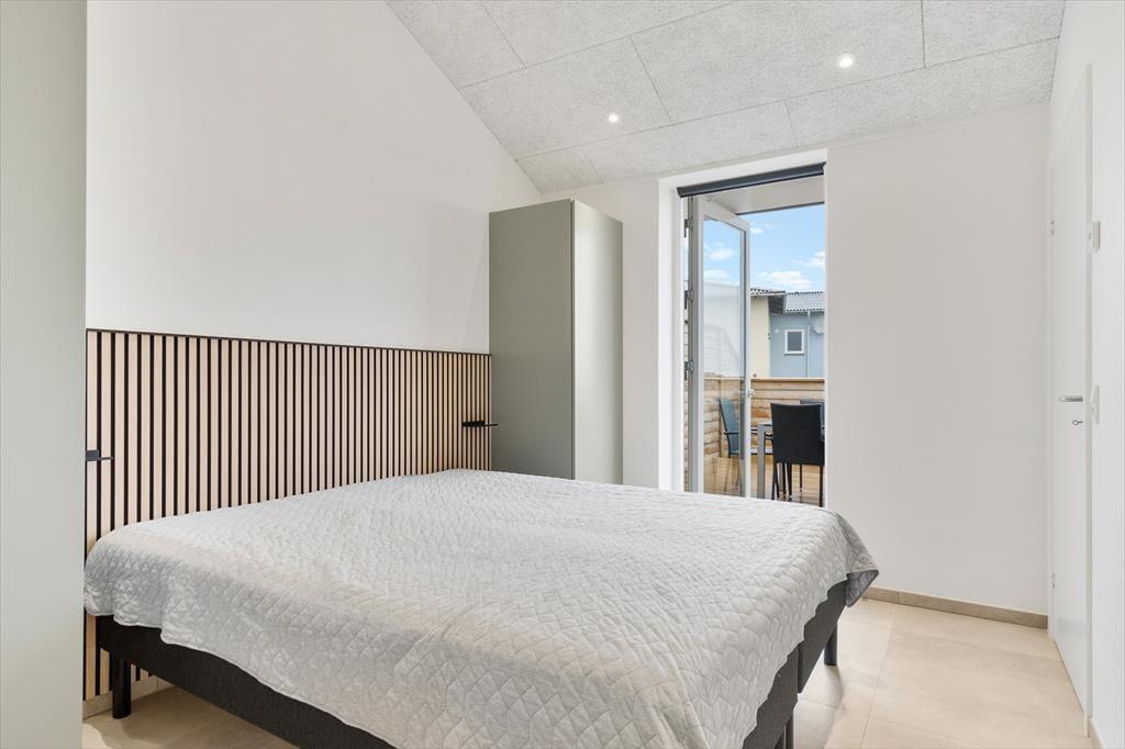 En flot træterrasse på hele 50 m2 breder sig i forlængelse af lejligheden. Ikke bare fra stuen, men også fra de to soveværelser fører en glasdør ud til det fri – så lige fra morgenstunden er det ingen sag at smutte ud i det fri for at trække frisk luft eller måske endda lave yoga-øvelser i den friske luft. Det kan også være, at en rolig stund i en havestol er lige det, du har brug for, og om aftenen har du mulighed for at grille, hvis du og dine kære ikke er ude for at spise på en af Hvide Sandes gode restauranter.