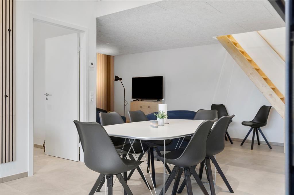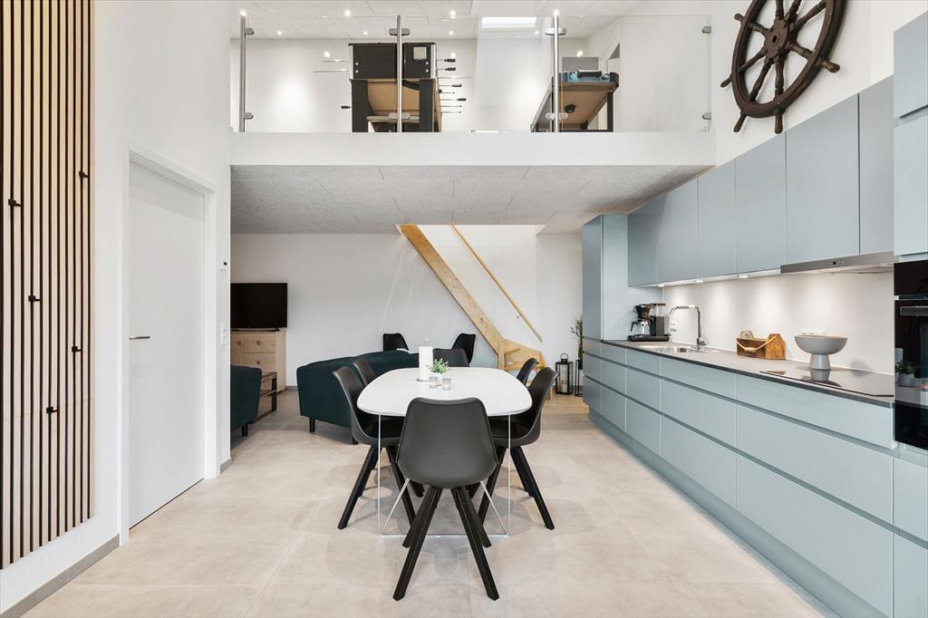 Lejligheden ligger midt i Hvide Sande i en nyopført ejendom – faktisk lige der, hvor Hotel Holmsland Klit lå før i tiden. Rammerne er lyse og stringente inden døre, og i de velindrettede rum er der mange dejlige detaljer at hæfte sig ved. Også nogle usynlige af slagsen, for der er for eksempel indlagt varme under opholdrummets fliser, så du ikke kommer til at fryse om fødderne, når du laver mad eller slapper af i sofaafdelingen. To dejlige soveværelser og et rummeligt badeværelse hører med til den velformede planløsning, og så er der endda ekstra plads på hemsen, hvor du finder et soverum med senge samt et åbent lege- og hyggeområde.
