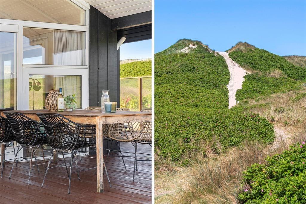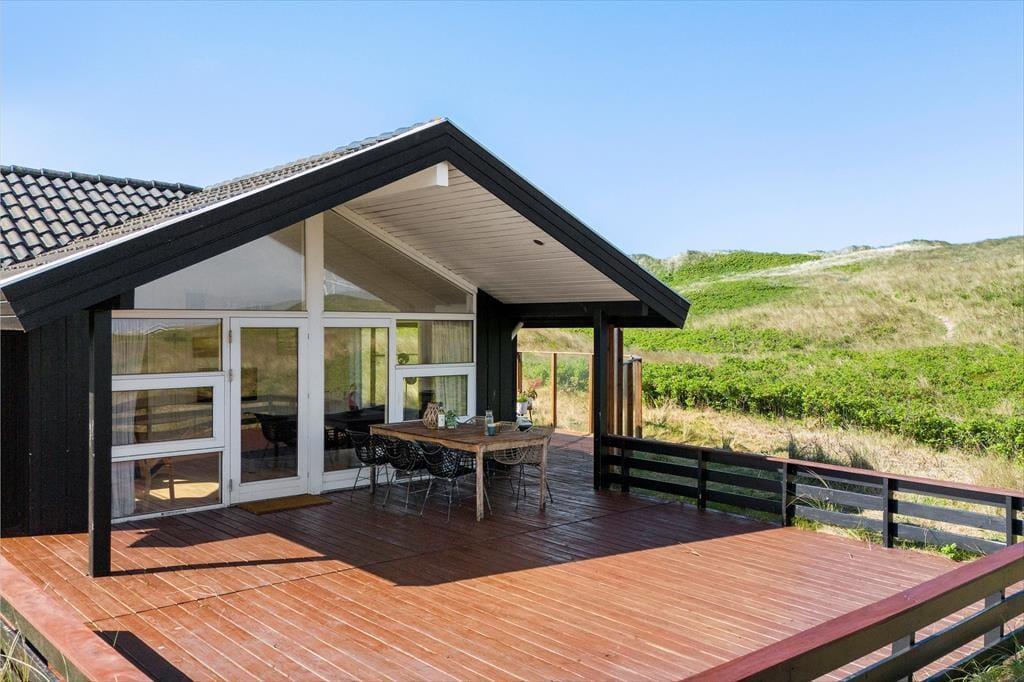 Terrassen breder sig rundt om huset, så I skal blot flytte havestolen en smule af og til for at følge med solen dagen lang. En del af terrassen er overdækket, og der er rig mulighed for at finde en god solkrog med læ, selv på en efterårsdag med vind fra nordvest. På østsiden af huset er der en lille fiskerenseplads med rindende vand, hvor dagens friskfangede fisk kan renses, inden de skal på grillen. Mod vest kan I nyde den uforstyrrede udsigt over klitterne, mens I indånder frisk havluft og måske ligefrem hører bølgernes brusen – det er ren meditation at sidde her og slappe af!