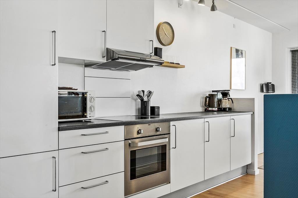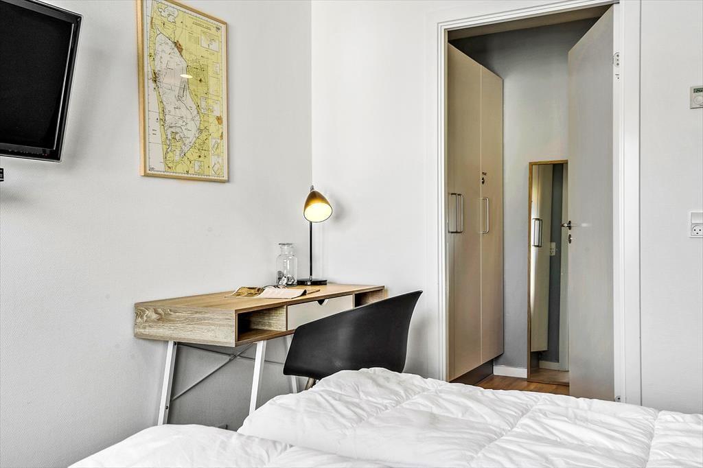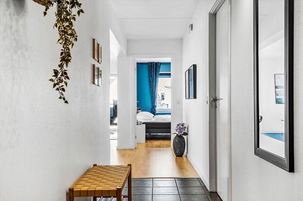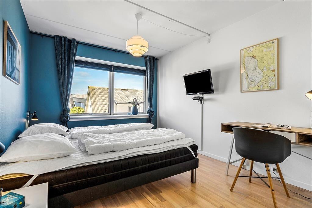 Ferielejligheden ligger på første sal i en attraktiv ejendom med elevator, og indretningen er moderne og komfortabel med luftige rum, hvor store vinduespartier lukker masser af naturligt lys ind. To soveværelser giver sengepladser til fire personer, og det ene har tilmed walk-in-closet. Badeværelset er indrettet med bruseniche og gulvvarme, og som en fin detalje er her et bryggers med vaskesøjle, skabsplads og grovkøkken. Ud over entréen består resten af ferielejligheden af et åbent opholdsområde. Køkkenet er indrettet med køkkenø, og her er god plads til at være sammen om at lave mad, mens opvaskemaskinen gør rengøringen nem. Ved spisebordet kan måltiderne nydes med udsigt til vandet, og aftenerne kan bruges i stuens sofaarrangement med tv.
