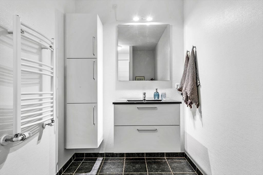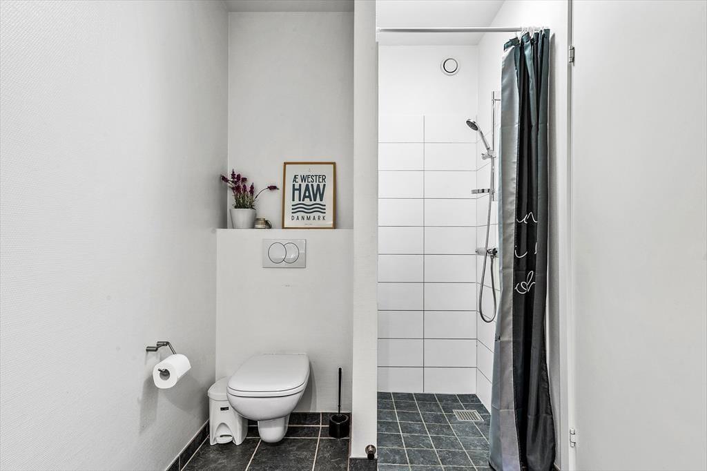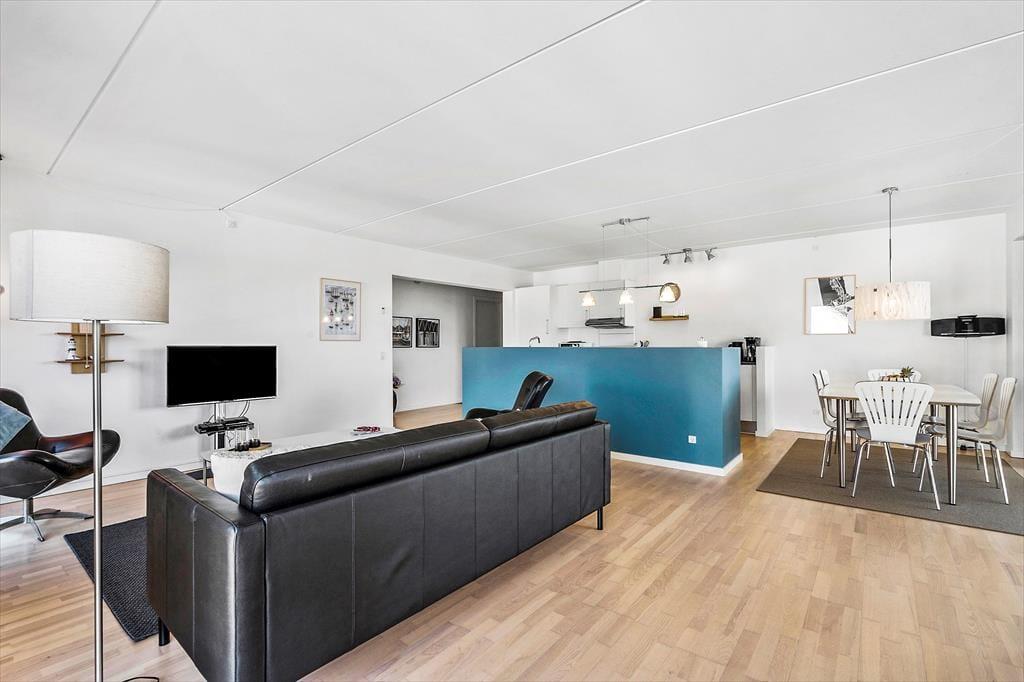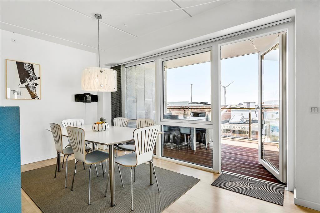 Fra stuen er der direkte adgang til den overdækkede, vestvendte terrasse, så det er nemt at servere dagens måltider og kølige drikke i det fri. Herfra har I udsigt over byens pulserende liv, havnebassinerne og Vesterhavet.