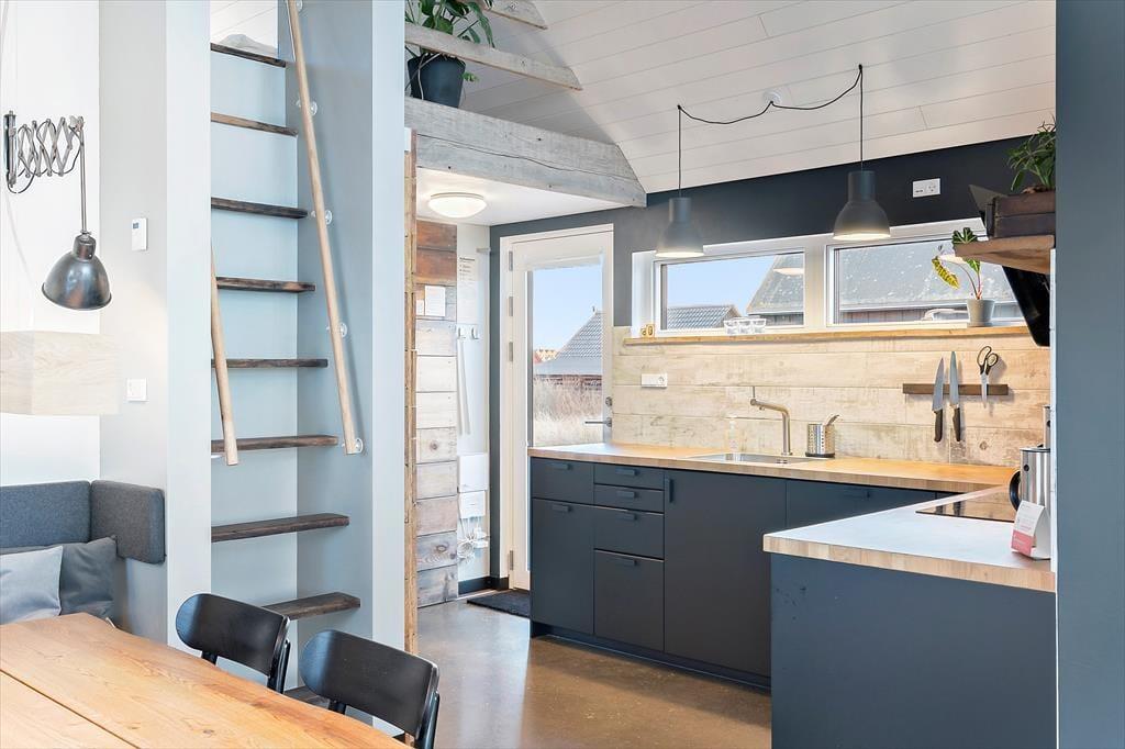 Bæredygtighed har i det hele taget spillet en stor rolle i byggeprocessen og materialevalget. Og så er huset er koblet på fjernvarmenettet, der forsyner Hvide Sande med grøn varme fra egne vindmøller, solfangere, og varmepumpeanlæg: Der er regulérbar gulvvarme i samtlige rum, og energiforbruget i huset er inkluderet i lejeprisen.