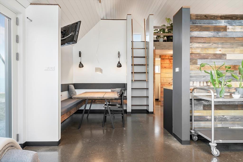 Arbejdspladsen i atelieret gør huset ideelt for billedkunstnere, musikere, skribenter, kreatører og bloggere, men huset kan selvfølgelig også lejes som almindelig feriebolig. De store vinduespartier i atelieret har ingen gardiner, men åbner et fantastisk vue over Tyskerhavnen, og bringer én helt tæt på fjordfiskerne og de mange forbipasserende på fjordstien udenfor.