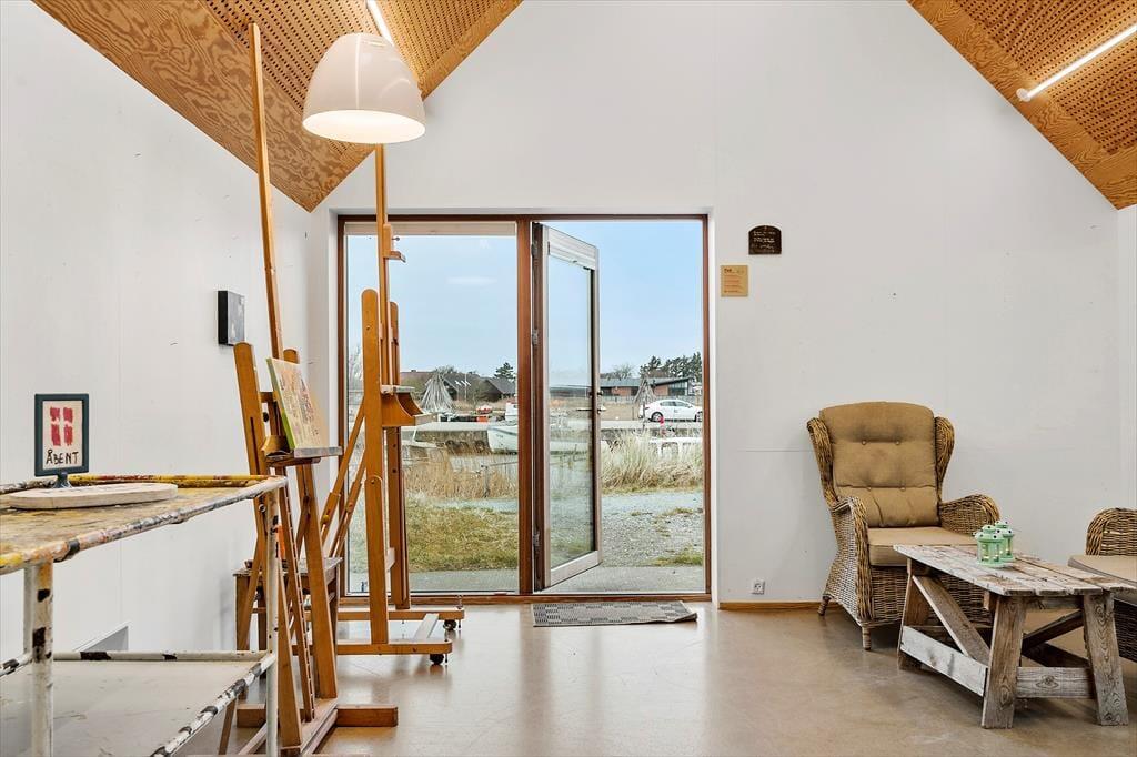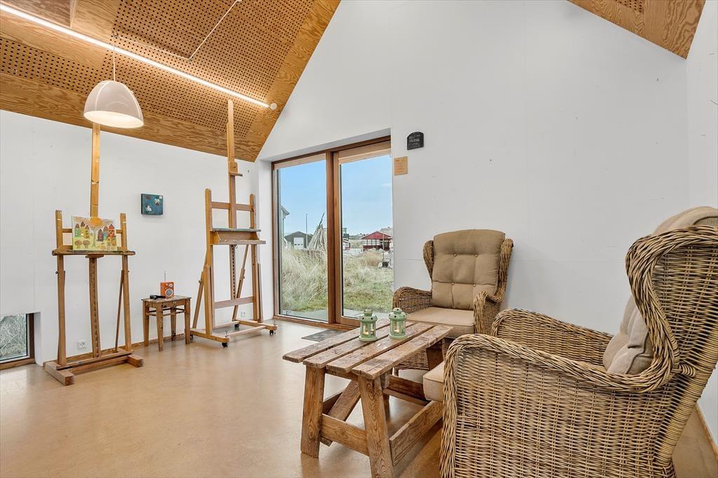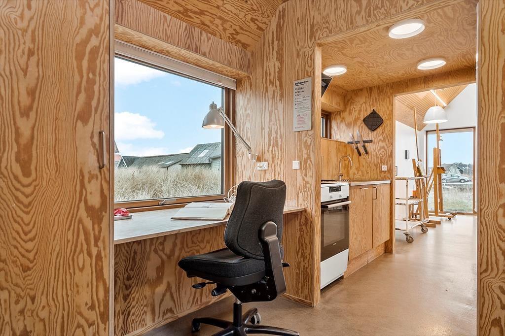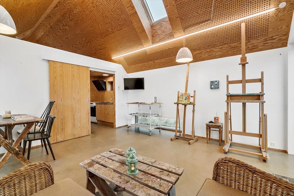 Huset, der går under navnet Art 56, bruges løbende som kunstnerbolig, så i perioder forvandles den store stue til galleri og åbent værksted. Når der ikke er kunstnere i huset, udlejes det som feriebolig, og hvis I kigger i bookingkalenderen, kan I se, hvornår det står klart til jeres ferie.