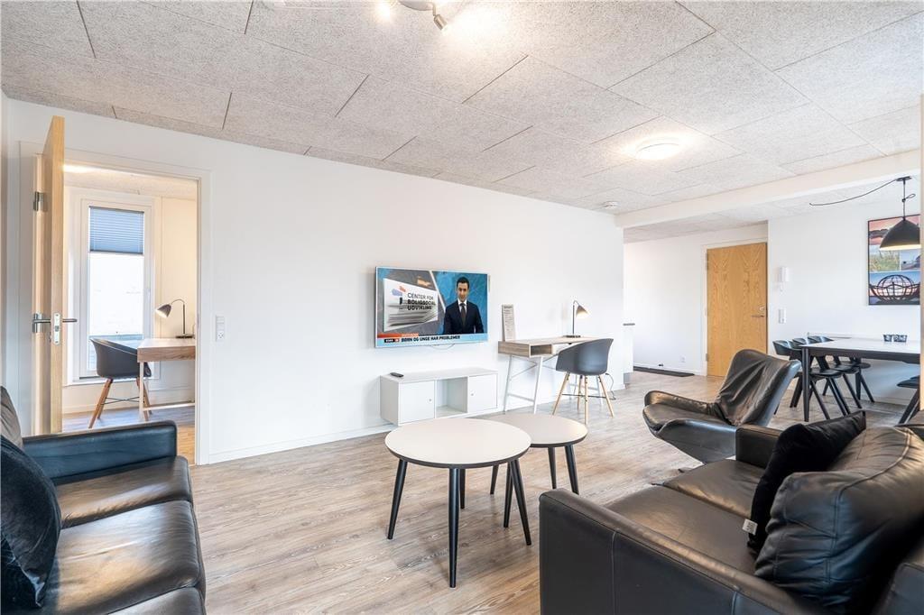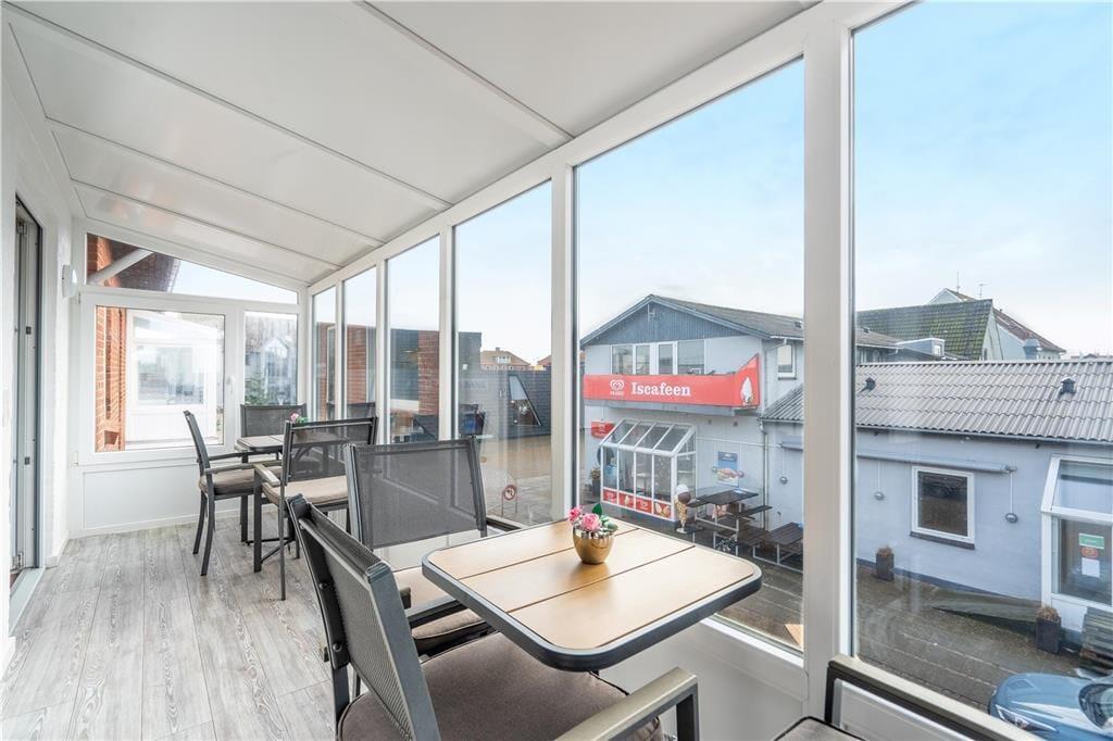 Fra opholdsområdet er der direkte adgang til en sydvendt, lukket altan på 10 m2. Her har I god plads til at nyde dagens snacks og forfriskninger i solen med udsigt over det pulserende byliv.