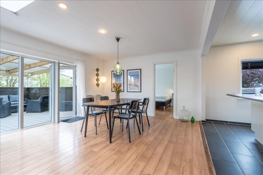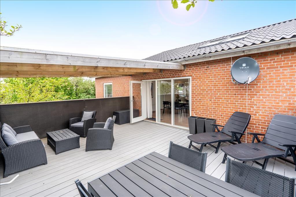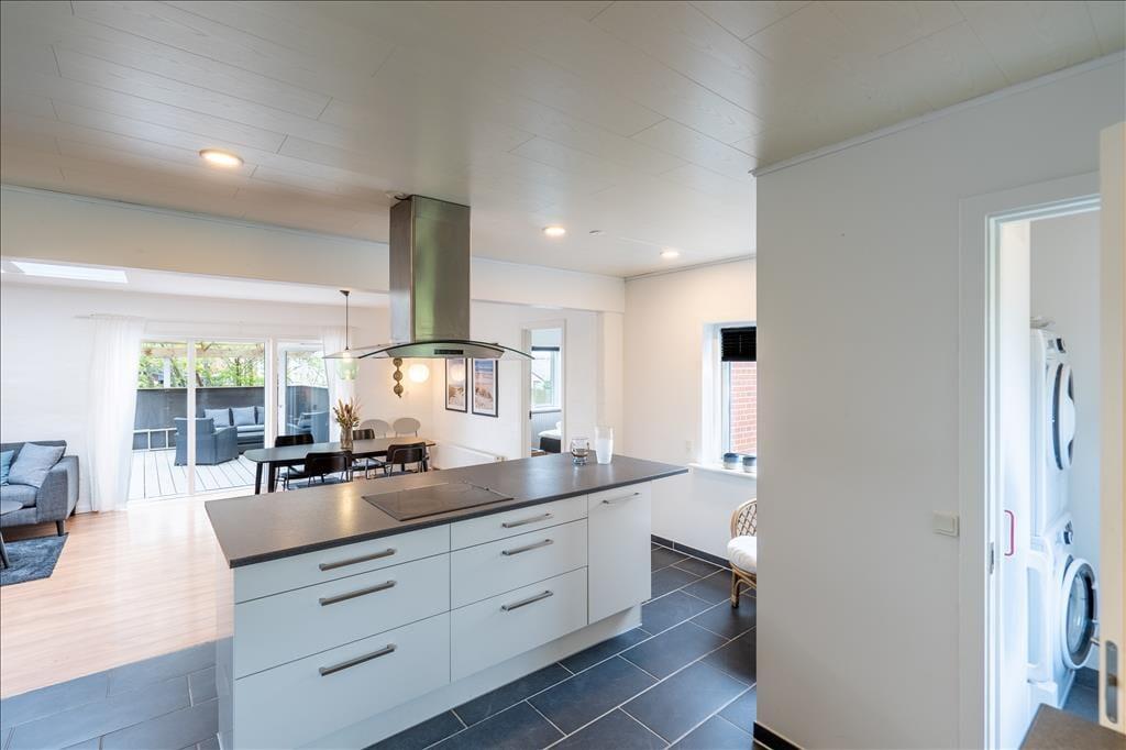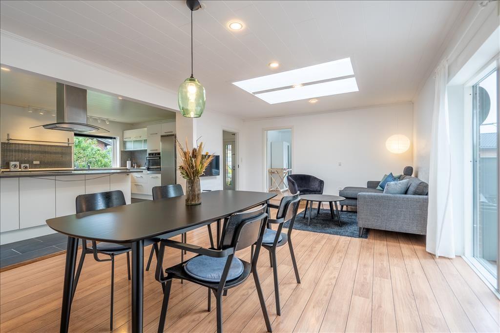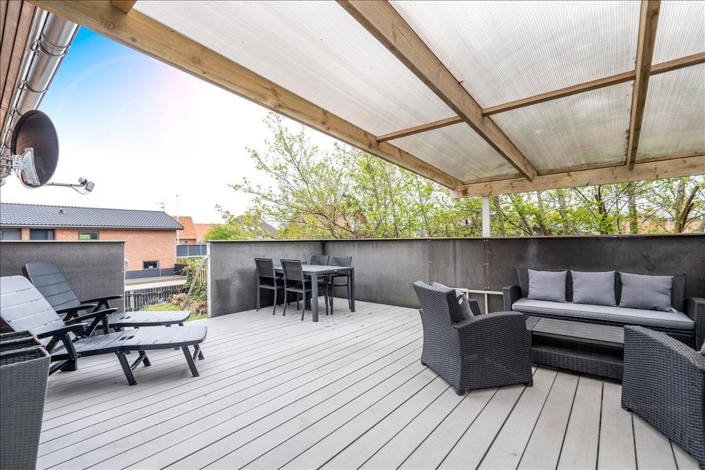 Med direkte adgang fra stuen til den store, sydvendte terrasse er det nemt at servere sommerens måltider eller et køligt glas rosé i solen. Terrassens delvise overdækning giver ly, hvis en byge skulle trække forbi. Her er god plads til at slappe af ved terrassebordet eller i solsengene, og terrassen er det perfekte sted at bruge sommeraftenen på at grille frisk fisk eller saftige bøffer. Endelig er her en gårdhave med plads til leg.