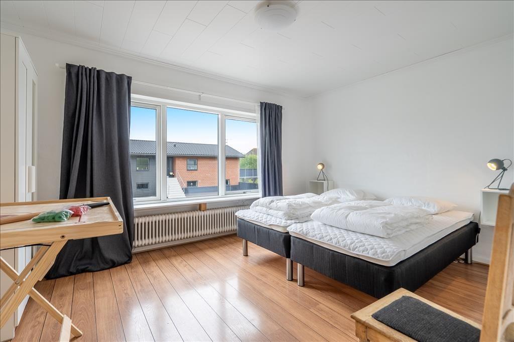 Ferielejligheden ligger på første sal i en velholdt villa og giver jer masser af lys, luft og albuerum. Rengøring, forbrugsomkostninger og linnedpakker er inkluderet i lejeprisen, så I kan bruge hele ferien på at slappe af. Entréen har plads til sko og overtøj, og badeværelset er indrettet med gulvvarme og bruseniche, mens lejlighedens depotrum er udstyret med en vaskesøjle. Begge soveværelser er store og luftige, og tilsammen giver de sengepladser til fire personer. I det store, åbne opholdsområde glider køkkenet og stuen i ét, og her kan I være sammen om at lave mad, mens retterne let serveres ved spisebordet i stuen, der har ovenlys. Et sofaarrangement med tv giver plads til hyggelige filmaftener, og med wi-fi kan I også surfe på nettet.