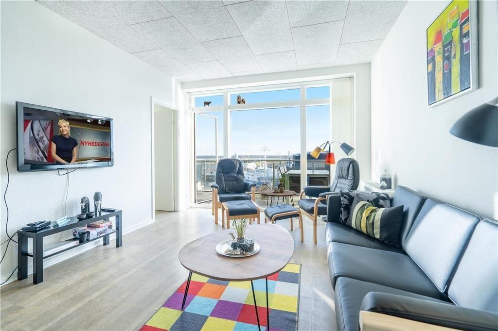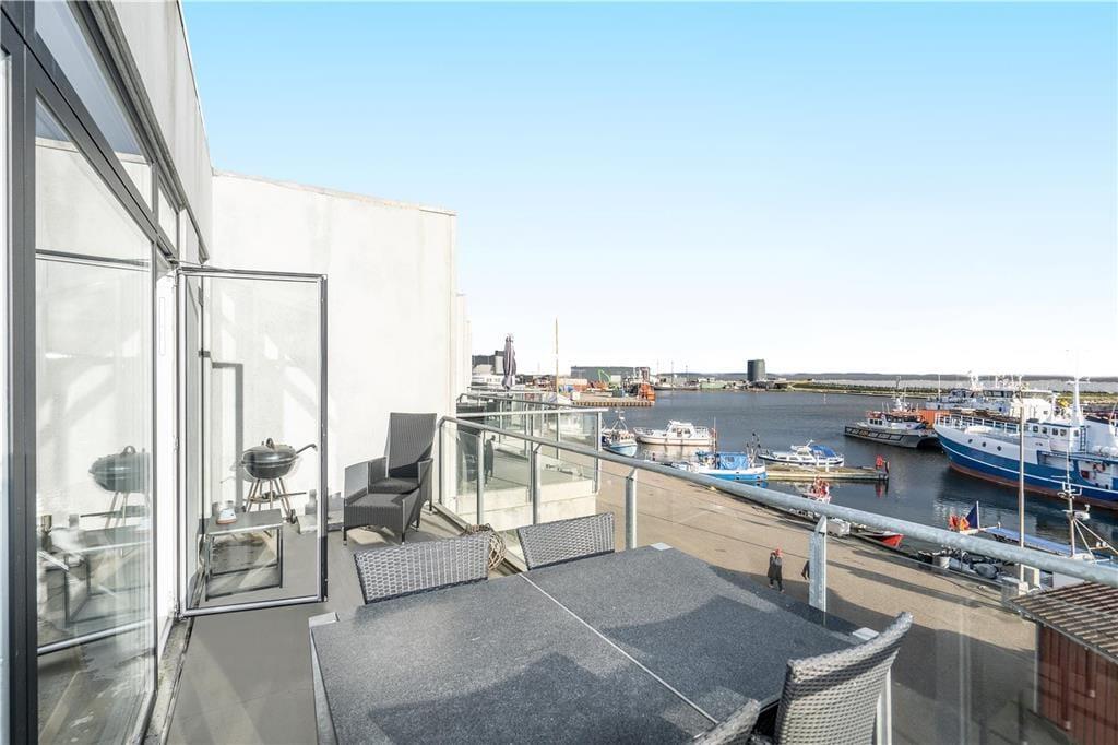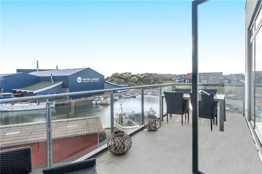 Denne velindrettede ferielejlighed ligger midt i Hvide Sande og lige ud til havnen og Ringkøbing Fjord. Med andre ord er det en helt perfekt adresse, for I har restauranter, butikker og diverse aktiviteter lige i nærheden, og samtidig kan I nyde den smukkeste udsigt over vandet fra stuen og altanen.