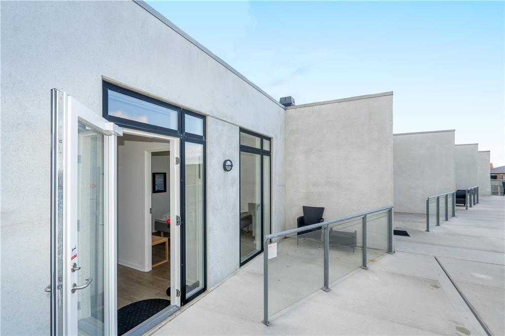 Ved ejendommen er der gode parkeringsforhold, og på vestsiden er der både trappe og elevator op til anden sal, hvor lejligheden ligger. Mod vest har I også et mindre opholdsareal, hvor I kan sidde og solen jer. Jeres foretrukne opholdsplads bliver nu nok østterrassen, for den er stor og byder på en spektakulær panoramaudsigt over fjorden og havnemiljøet.