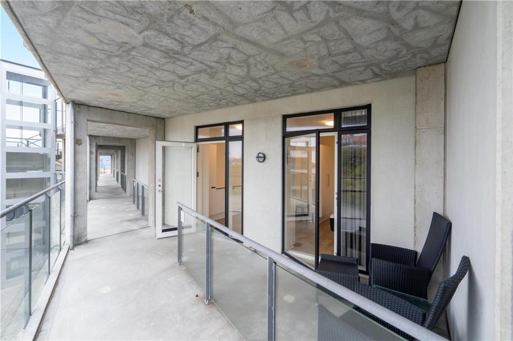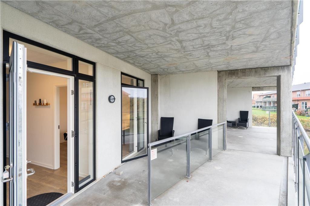 Fra både stuen og soveværelset kan I træde lige ud på den overdækkede altan, og herfra har I et skønt overblik over havnen og vandet. Når det er ferietid, kan dagens planer blot bestå i at spise frokost her eller få en siesta i liggestolen – og hvis I har brugt dagen ude, kan I nyde eftermiddagssolen på lejlighedens vestvendte terrasseområde, når I vender hjem til lejligheden.