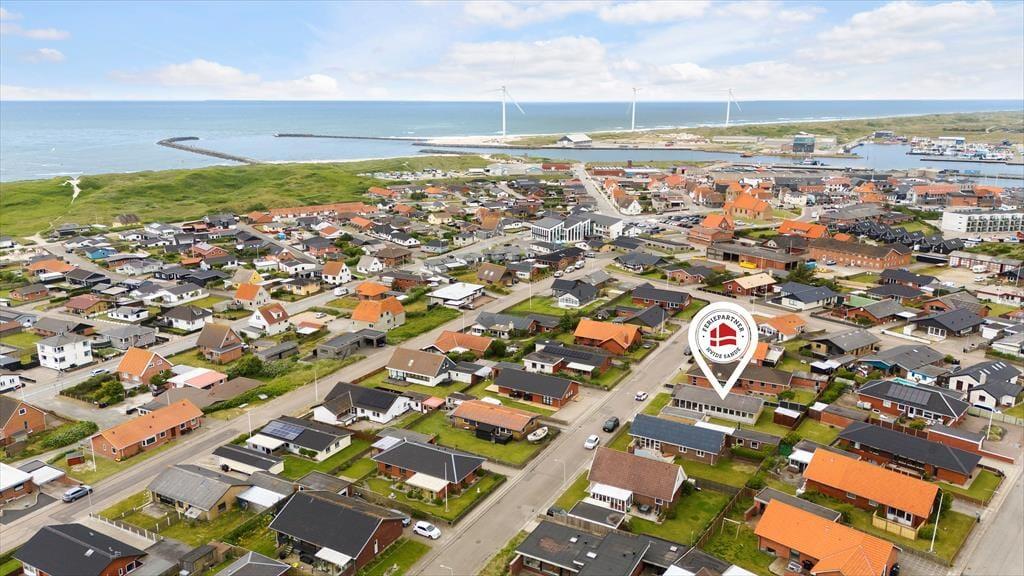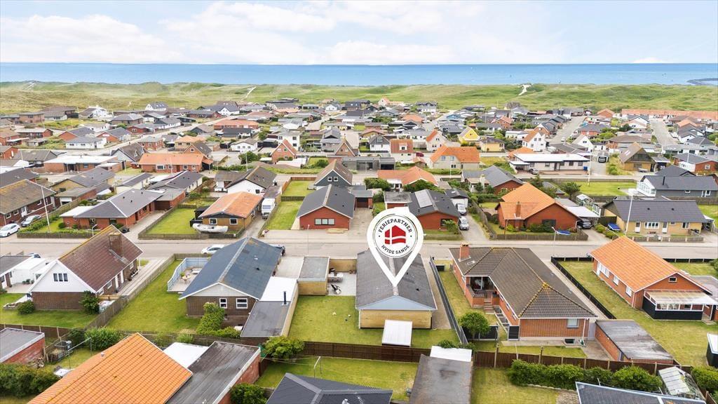 Sommerhuset ligger på en lille vej på søndersiden af Hvide Sandes sluse, bare en ganske kort gåtur fra butikker og restauranter og dejligt tæt på såvel Ringkøbing Fjord som Vesterhavet. For eksempel er der kun 500 meter til Hvide Sande Sydstrand, der byder på hvidt sand både indenfor og udenfor molen – her kan du bade i det salte vand, og når vejrforholdene er til det, er det også et populært sted at surfe. Lystfiskerne kan blandt andet prøve lykken ved et af de gode fiskespots på havnen, og hvis du hellere vil have, at andre håndterer fiskene for dig, kan du handle i en af byens fiskehandlere eller gå på restaurant. Skulle vejret indbyde til indendørs aktiviteter en dag, har du som lejer af huset gratis adgang til Hvide Sande Svømmehal, der lokker med sauna, spabad, rutsjebane og flere bassiner.