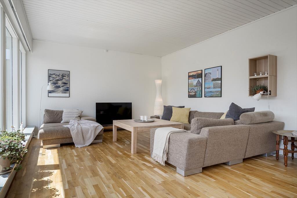 Det gule murstenshus er blevet totalrenoveret i 2024, og inden døre er der hele 124 m2 at brede sig på, så med andre ord får du en lækker og rummelig ramme om nattesøvn, afslapning og sociale stunder. Rummene er indrettede, så I nemt kan være seks personer samlet, og faktisk er sengepladserne fordelt på fire soveværelser, hvilket giver jer en vis fleksibilitet – for eksempel hvis familiens teenager gerne vil sove for sig selv, eller hvis du vil skåne de andre for din snorken. Når I alle vil hygge jer sammen, er stuen det oplagte sted at hænge ud. Den komfortable sofaafdeling er sådan én, I straks kan føle jer hjemme i, og spisebordet indbyder til lækre måltider og gode samtaler. Hyggesnakken kan selvfølgelig også blomstre, når I hjælpes ad med at lave maden i det flotte og veludstyrede køkken.