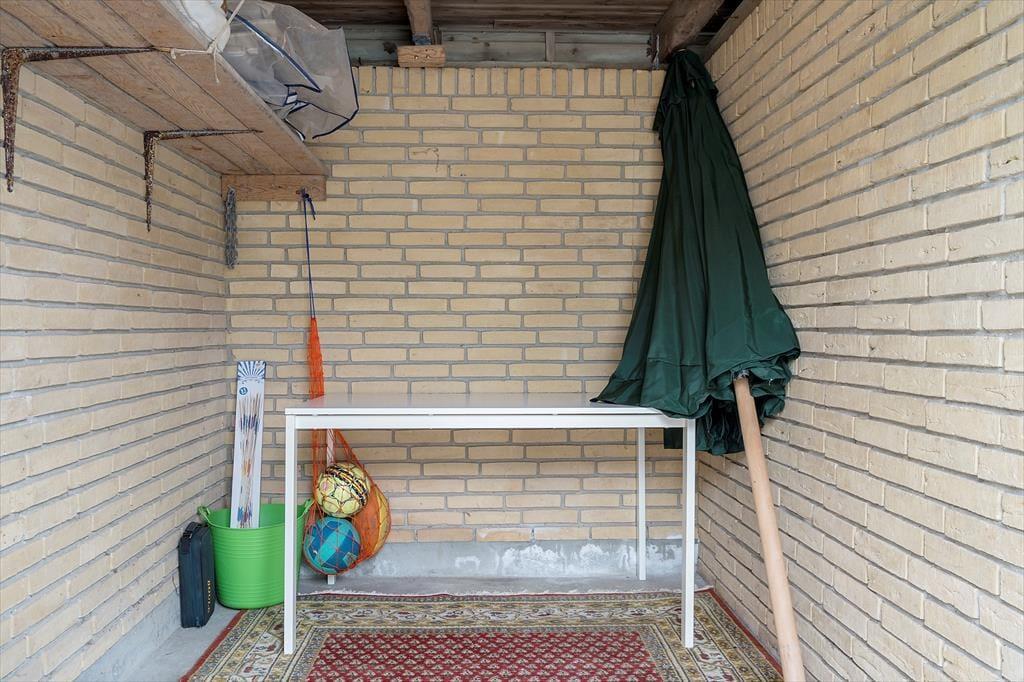 Garagen: 2,25 mtr. bred, 2,00 mtr. høj og 5,0 mtr dyb. Kan IKKE låses.