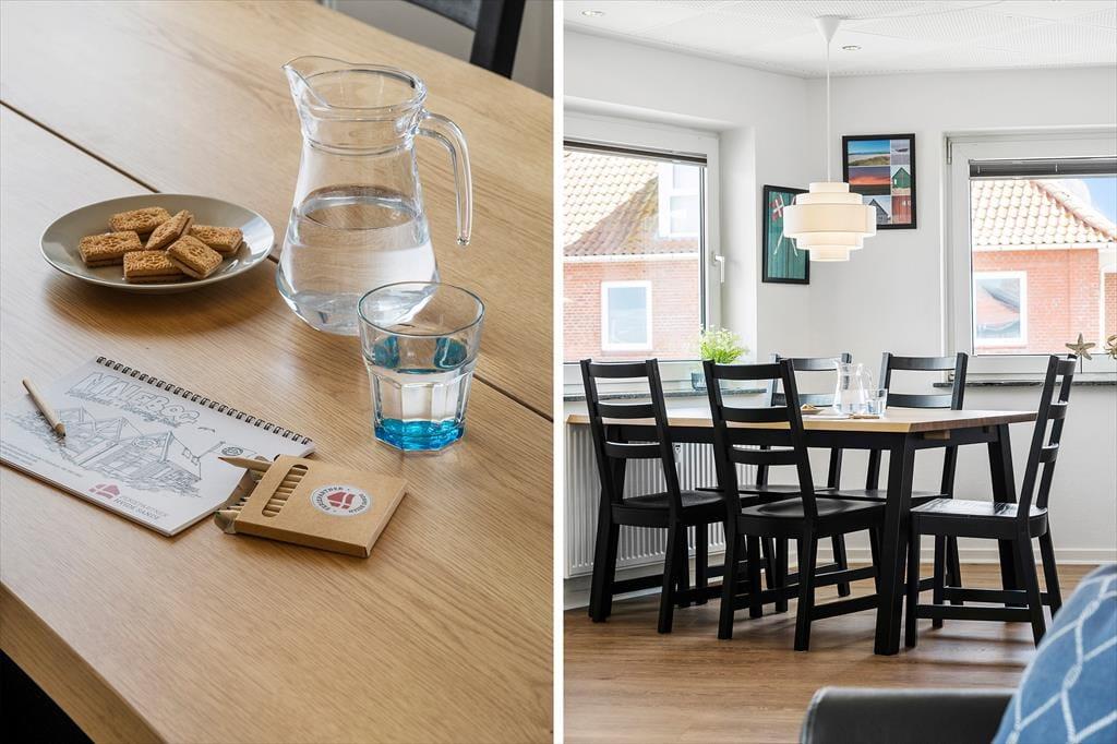 Hvis du er stedkendt i Hvide Sande, har du sikkert allerede bemærket apoteket, der ligger helt centralt i den hyggelige fiskerby – og dermed kender du også adressen for denne store, totalrenoverede lejlighed, der er placeret lige ovenover med udsigt til både gadelivet og Ringkøbing Fjord.