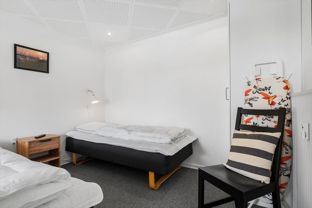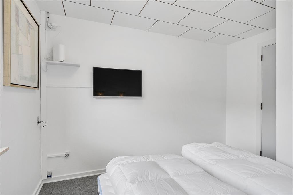 Lejligheden ligger på første og dermed øverste sal i en køn rødstensejendom. Mod vest har lejligheden egen indgang med entré i stueplan, og inden døre har har du og dine kære hele 96 m2 at brede jer på. Alle rum fremstår lyse og indbydende, for lejligheden blev grundigt moderniseret i 2024, og med nye senge, sofaer og andet interiør er du sikret et komfortabelt ophold. Planløsningen, der passer godt til fem personer, byder på to soveværelser og et brusebadeværelse, og fra gangarealet er der åben forbindelse til et lille, men veludstyret køkken. På begge soveværelser hænger der et tv på væggen, og der er også mulighed for at slappe af med film og serier i stuens sofaafdeling – hvis altså ikke du hellere vil hygge dig med en bog i en god lænestol eller slå dig ned ved spisebordet med udsigt til gaden og fjorden i baggrunden.