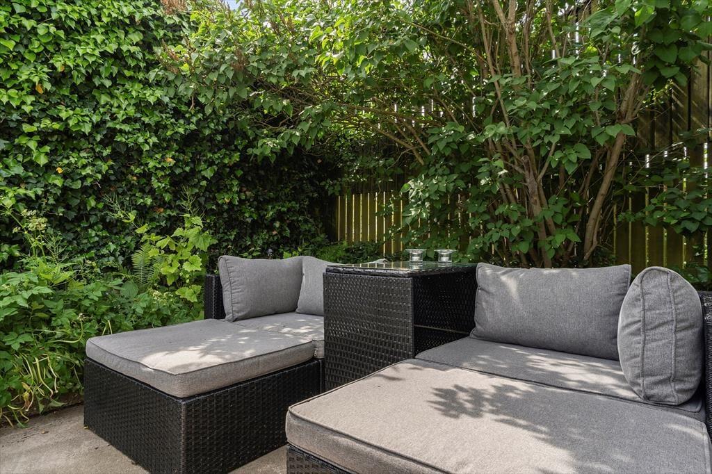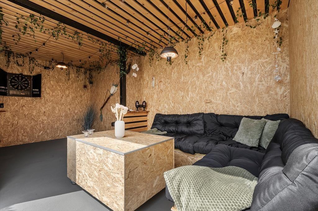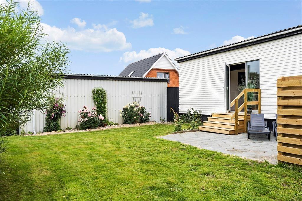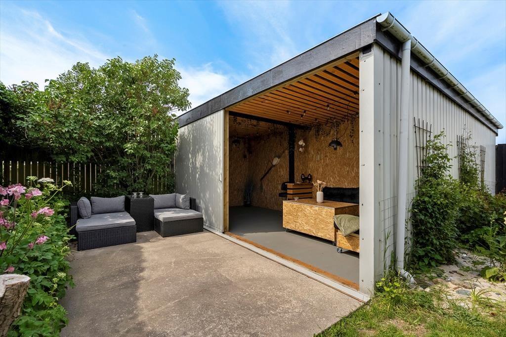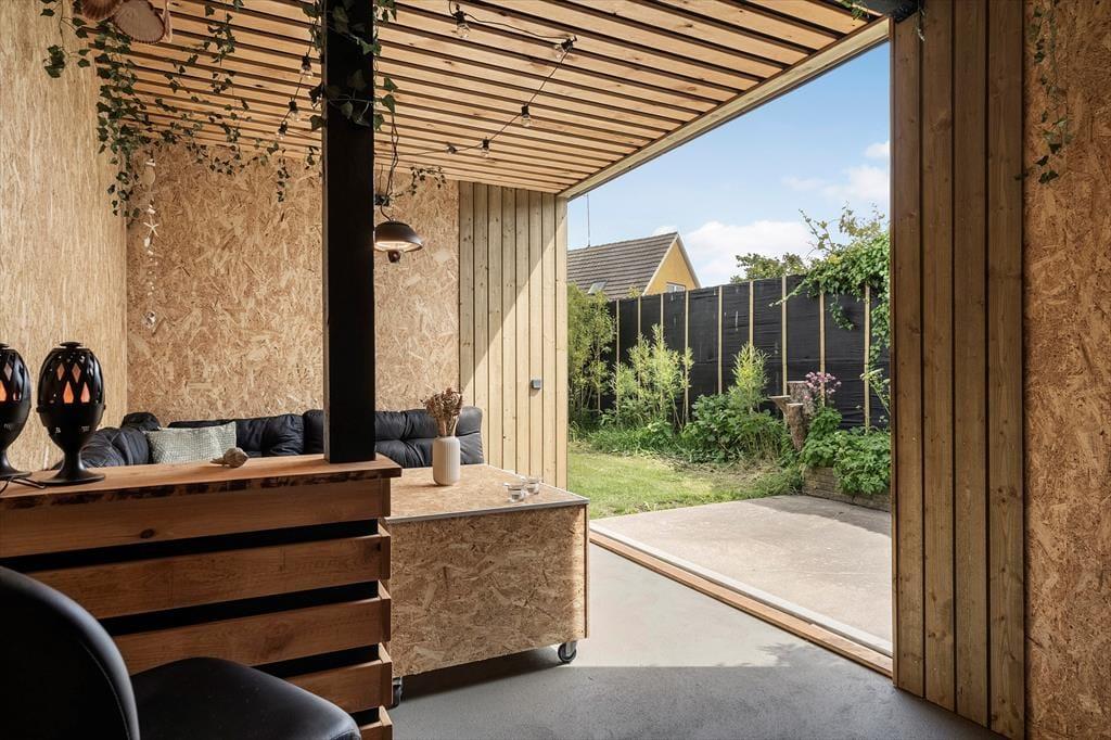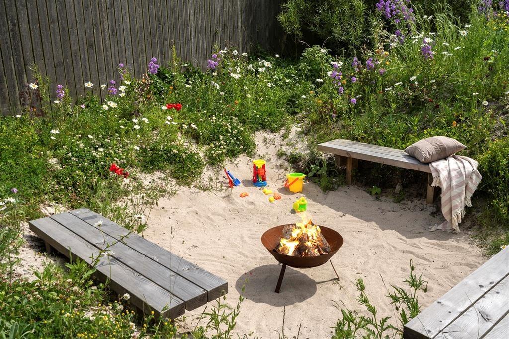 Den sydvendte have er et skønt, lukket og ugeneret frirum, hvor I kan nyde solen og hinandens selskab i ro og mag. Det overdækkede uderum forlænger udendørssæsonen med varmelampe, lækre loungemøbler og en elektronisk dartskive, som indbyder til konkurrencer og grin, længe efter solen er gået ned. På lune sommeraftener kan I samle jer omkring bålpladsen og mærke roen brede sig, mens flammerne knitrer og mørket sænker sig.