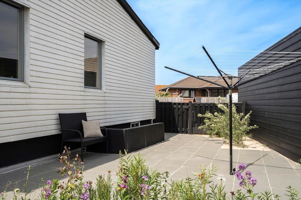 Derudover er der adgang til et aflåst rum på 15 m², som gør det nemt at opbevare både cykler, surfboards og havehynder tæt på huset. Så snart solen titter frem, kan I let finde hynderne frem og skabe jeres egen lille oase i solen. Jeres bil kan I parkere trygt og bekvemt i husets carport, hvor den står i læ og skygge – klar til nye eventyr langs Vestkysten.