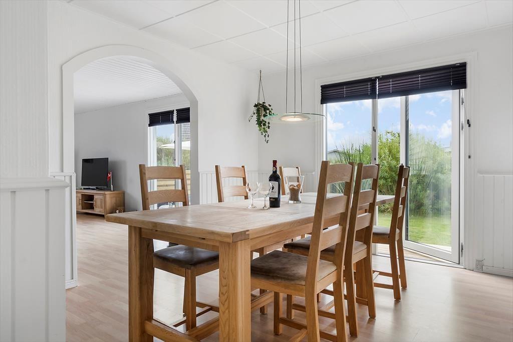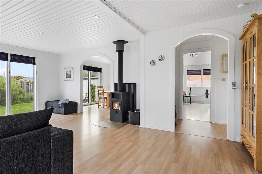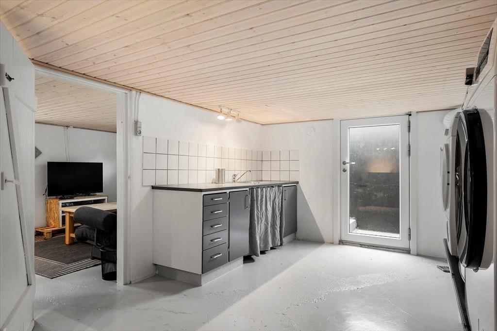Der er en skøn atmosfære indenfor i sommerhuset, som blev totalrenoveret i 2024. Her er alt lyst, moderne og gennemtænkt, så du hurtigt vil føle dig hjemme. I stueplan er der god plads til fællesstunder med familien – både i det store opholdsrum og i det veludstyrede køkken, hvor samtalerne nemt fortsætter, mens morgenkaffen brygges eller aftensmaden forberedes. Stuen indbyder til afslapning med store vinduespartier, komfortable møbler og hyggelig stemning. Og i kælderen venter der et ekstra plus: et charmerende spillerum, hvor børnene kan lege frit, og hvor både playstation og legetøj til de mindste gør det nemt at fordrive tiden – især på regnvejrsdage. Her finder du også både vaskemaskine og tørretumbler, så det praktiske er nemt at håndtere undervejs.