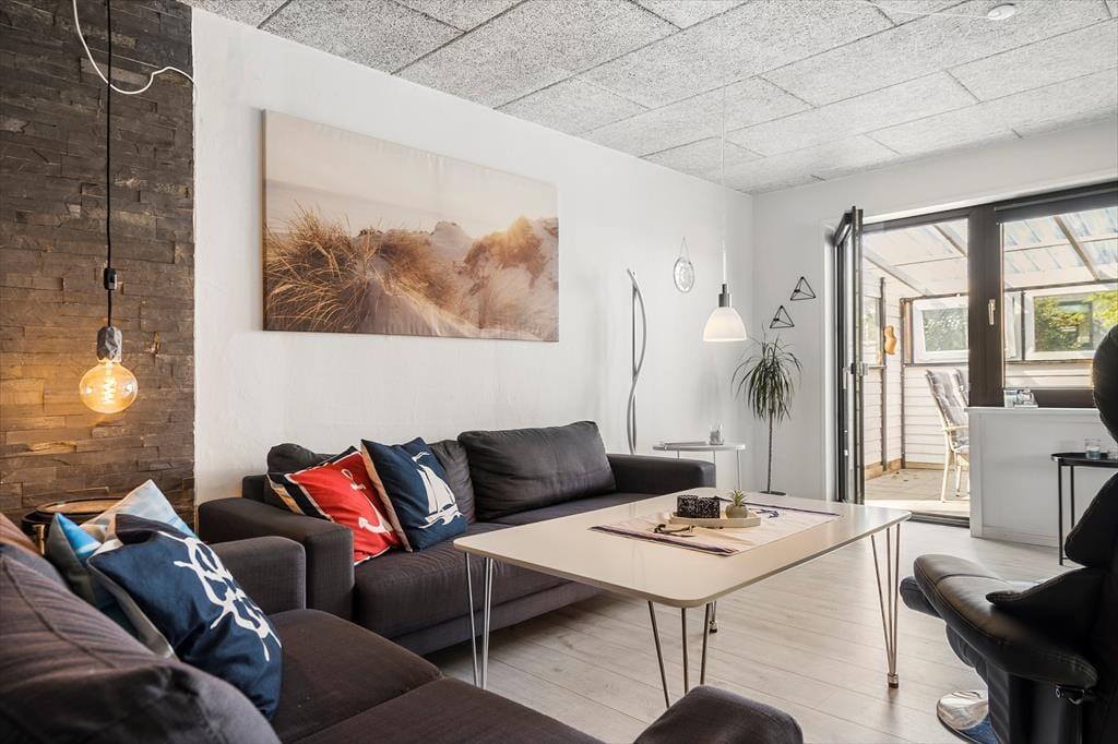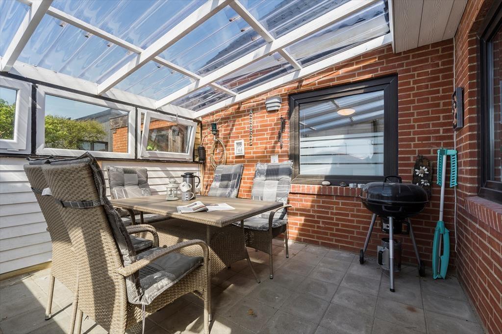 På den private og lukkede grund og terrasse kan du slappe af med en god bog eller nyde morgenkaffen, mens du lader de friske havbriser kærtegne ansigtet. En af de helt særlige perler ved denne ferielejlighed er den store, hyggelige og overdækkede udestue. Her kan du slappe af i læ for vinden, mens du nyder naturens lyde. Udestuen er perfekt som et roligt sted til at samle energi efter en dag med aktiviteter. Den lyse og indbydende atmosfære gør det til et skønt opholdssted, uanset vejret udenfor.