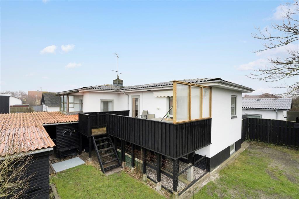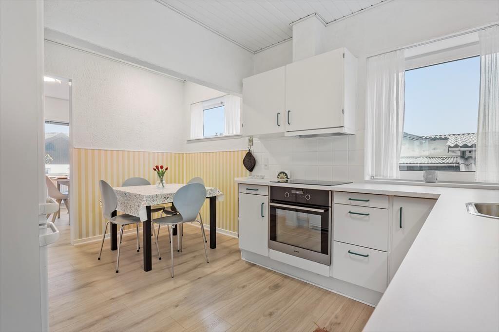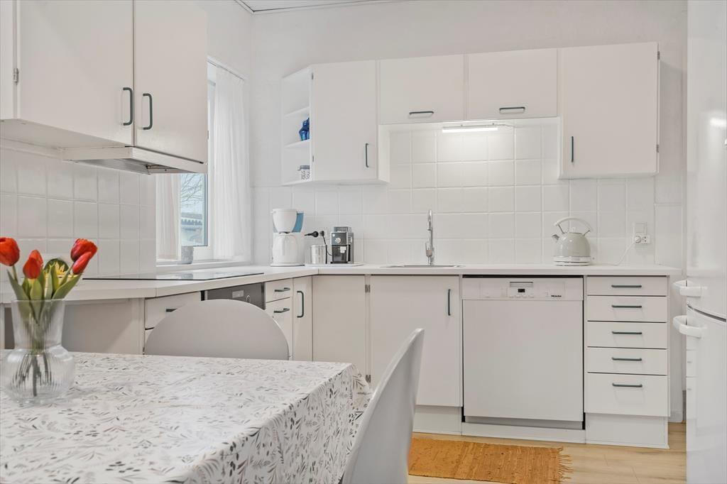 Dette to-etagers hus byder på en lys og indbydende atmosfære. På stueplan finder du en stor, åben stue, hvor du og familien kan samles til hyggelige kortspil eller blot slappe af efter en lang dag. Det dejlige køkken med spiseplads gør det nemt at tilberede og nyde måltider sammen, og fra spiseområdet har du direkte udgang til en træterrasse. Herfra kan du tage trappen ned i den lukkede have, der er perfekt til afslapning og leg. Badeværelset er praktisk placeret i kælderen.