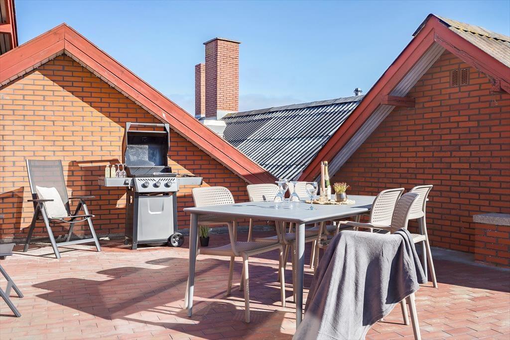 Lejligheden byder på to rummelige terrasser, der indbyder til afslapning og hyggelige stunder under åben himmel. Med en terrasse mod sydøst og en mod sydvest kan I følge solens gang fra morgen til aften. Nyd jeres morgenkaffe med udsigt til de livlige havneaktiviteter, hvor fiskerbådene sejler ind med dagens fangst, og mærk den autentiske atmosfære, som præger denne hyggelige havneby. Om aftenen kan I samles til en lækker middag i det fri, mens solen langsomt går ned i havet og skaber en malerisk baggrund for jeres ferieoplevelser. Med komfortable havemøbler og en grill til rådighed er det oplagt at forlænge de lune sommeraftener udendørs. Området er også perfekt til en gåtur langs kajen, hvor I kan opleve det lokale fiskermiljø på tæt hold. Op til to hunde er velkomne, så jeres firbenede venner kan være en del af ferieeventyret.