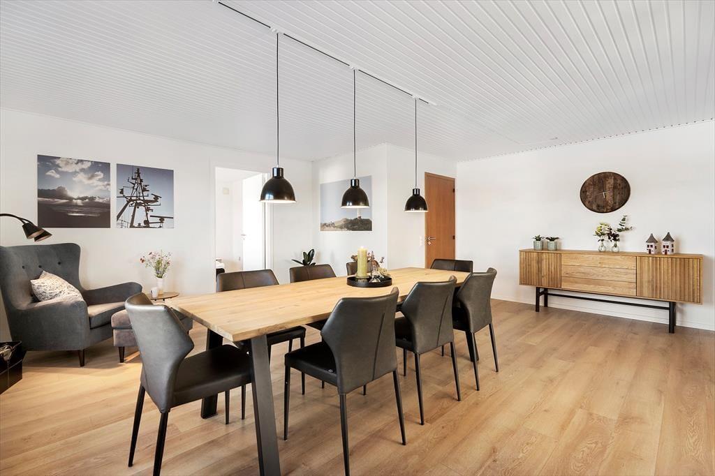 Velkommen til denne eksklusive ferielejlighed i hjertet af Hvide Sande. Beliggende på første sal i den historiske bygning, der huser Hvide Sande Røgeri, kombinerer lejligheden moderne komfort med autentisk maritim stemning. De originale detaljer, som de smukke træelementer og den rustikke byggestil, er nænsomt bevaret, mens de lyse rum og det stilrene interiør skaber en luksuriøs atmosfære. Her finder I et rummeligt opholdsrum med store vinduer, der lukker masser af naturligt lys ind og giver en betagende udsigt over havnen. Køkkenet er veludstyret med moderne faciliteter, så I let kan tilberede lækre måltider. Måske med fisk, som I selv har fanget på en af Hvide Sandes moler, eller købt i fiskebutikken lige nedenunder jer. Derudover rummer lejligheden fire hyggelige soveværelser med god skabsplads og komfortable senge, der sikrer en god nats søvn efter en dag fyldt med oplevelser. Fra de to solrige terrasser kan I nyde den friske havluft og følge med i livet på havnen, mens I slapper af med en kop kaffe eller et glas vin.