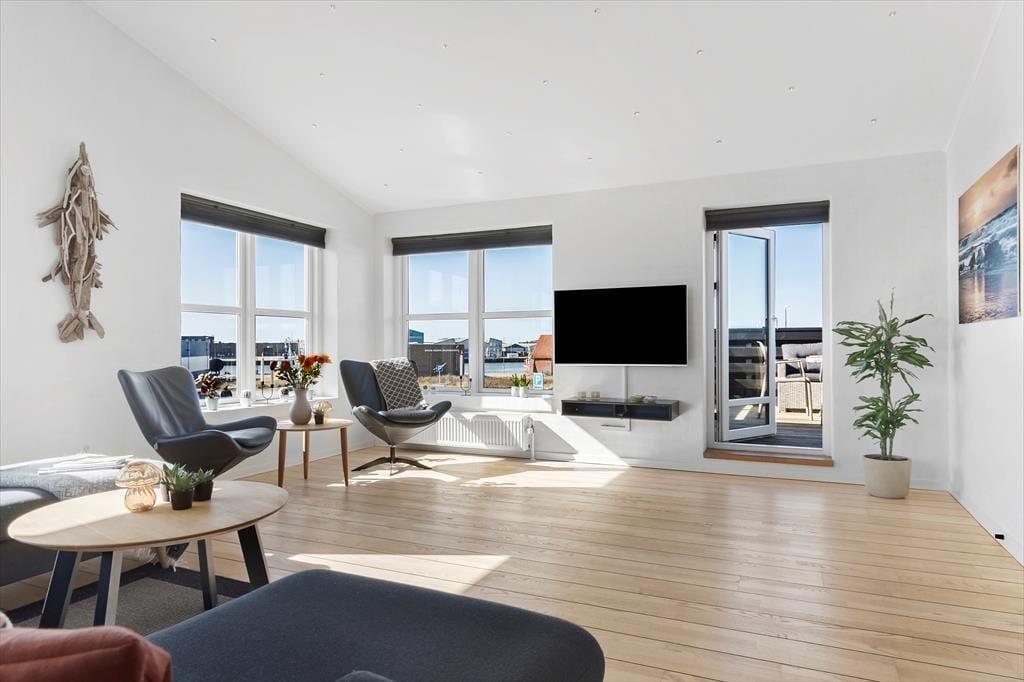 Drømmer I om en ferie med havneudsigt, maritim charme og moderne komfort? Denne eksklusive ferielejlighed i hjertet af Hvide Sande giver jer det bedste af både by og natur. Med en beliggenhed lige ved havnen og to solrige terrasser kan I nyde livet ved Vesterhavet året rundt. Her får I en autentisk ferieoplevelse, hvor den friske havluft, lyden af bølgerne og de charmerende omgivelser danner rammen om uforglemmelige stunder. Uanset om I er til afslapning eller eventyr, er dette det ideelle udgangspunkt for jeres næste ferie.