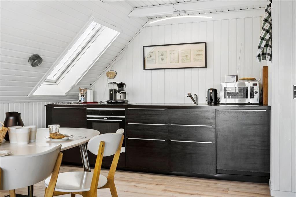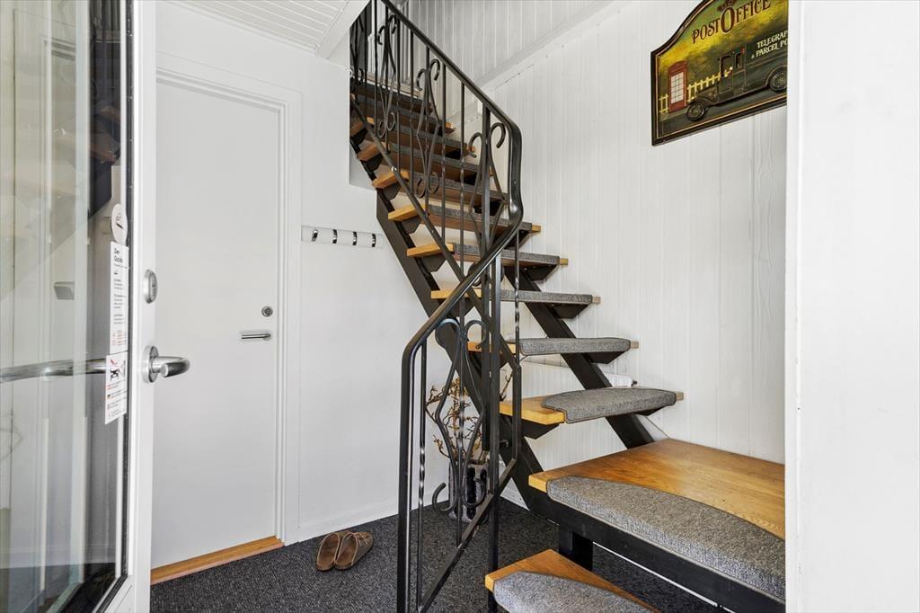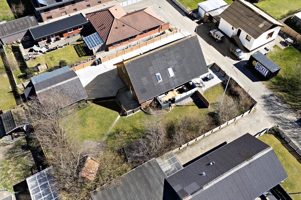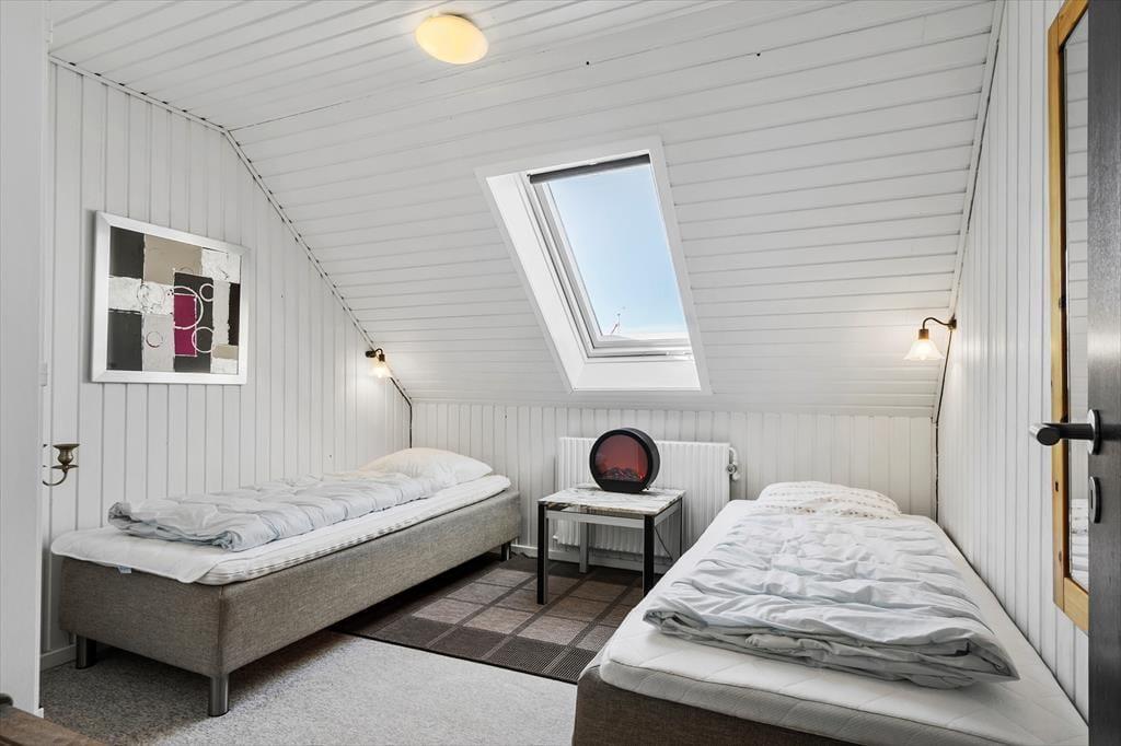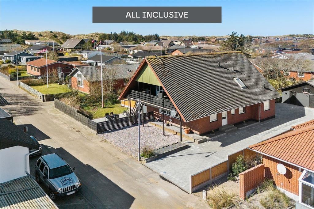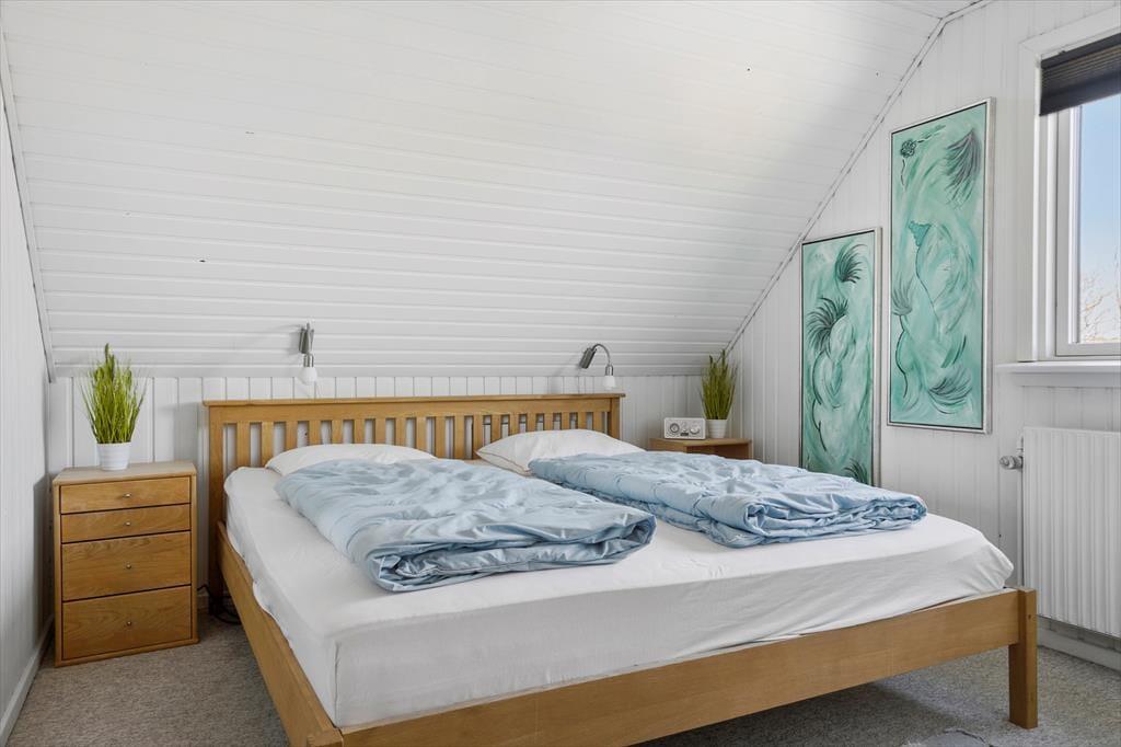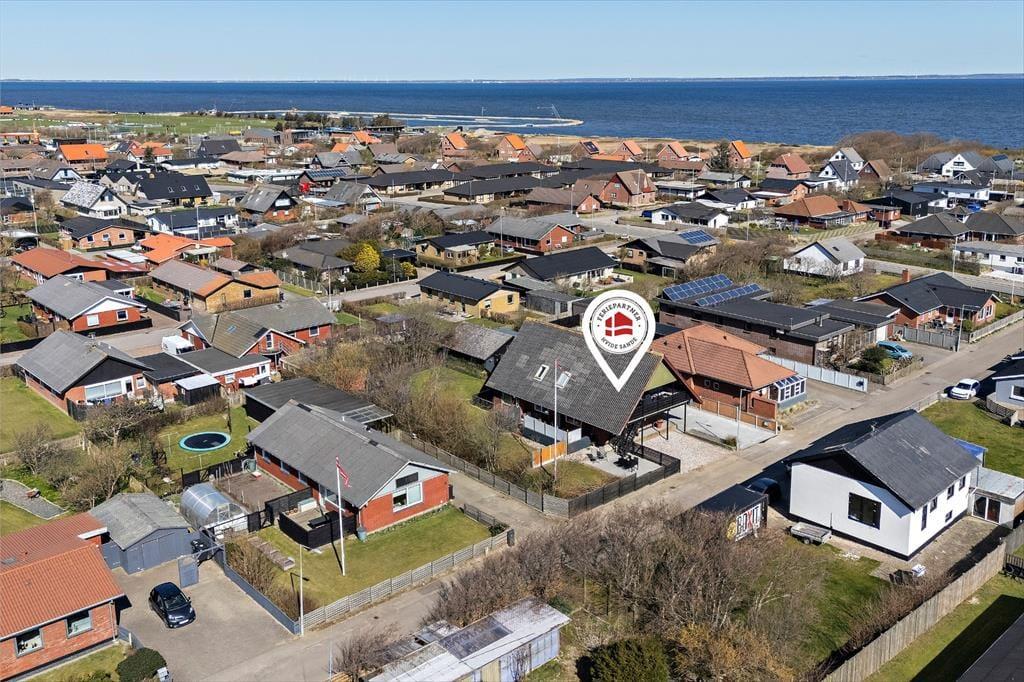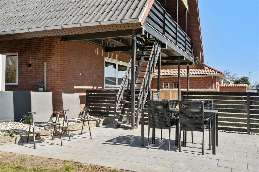 Altanen er hjertet i udelivet her – og det forstår man godt. Heroppe kan du sidde i læ for vinden med udsigt til det lille stykke græs nedenfor, mens morgenkaffen nydes under åben himmel. En trappe fra altanen fører ned til en dejlig terrasse, hvor du kan finde skygge på varme dage eller lade børnene lege, på det lille stykke græs, mens du selv slapper af i havemøblerne. Har du brug for at rense dagens fangst, har du adgang til en fiskerenseplads i det store aflåste skur, som også er ideelt til opbevaring af alt fra surfbræt og elcykel til fiskestænger. Og med privat parkering lige foran huset bliver logistikken under ferien dejligt enkel – du skal bare lande, pakke ud og nyde livet.