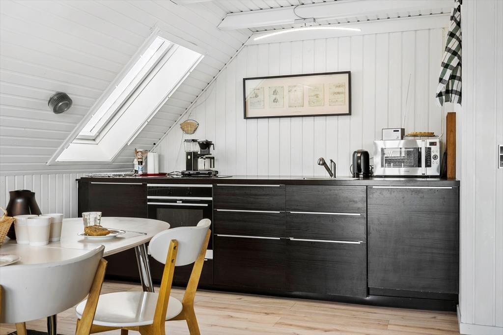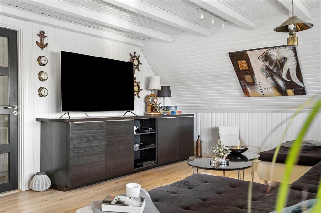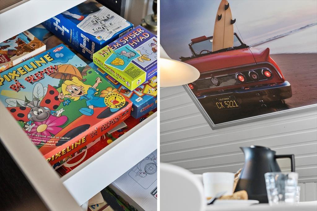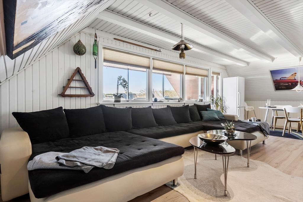 Når du træder indenfor i Surfers Lounge, bliver du mødt af en moderne, stilren indretning, der skaber ro og feriestemning med det samme. Her er rummeligt og lyst, og takket være de tre gode soveværelser kan du nemt dele ferien med venner eller familie – og har I brug for mere plads, kan hele stueetagen også lejes gennem , så I har huset helt for jer selv. Søg blot på HusID 8820. Det store opholdsrum danner den perfekte ramme om alt fra morgenkaffe i ro og mag til fælles madlavning og hyggeaftener med grin, kortspil og et glas vin i hånden. Her mærker man virkelig, at man er kommet væk hjemmefra – og det bliver kun endnu bedre, når solen skinner, og dørene åbnes ud til terrassen.