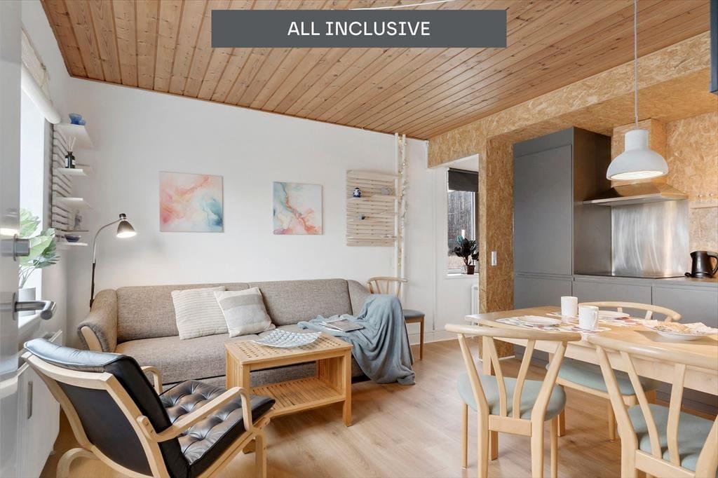 Bemærk for denne lejlighed gælder s ALL INKL. KONCEPT. Det vil sige at ikke kun slutrengøringen, men også forsikring, forbrug og sengelinned til alle gæster er også regnet med i lejeprisen, så du har fuldt overblik over prisen. Ingen ekstraregning for forbrug og ingen depositum.