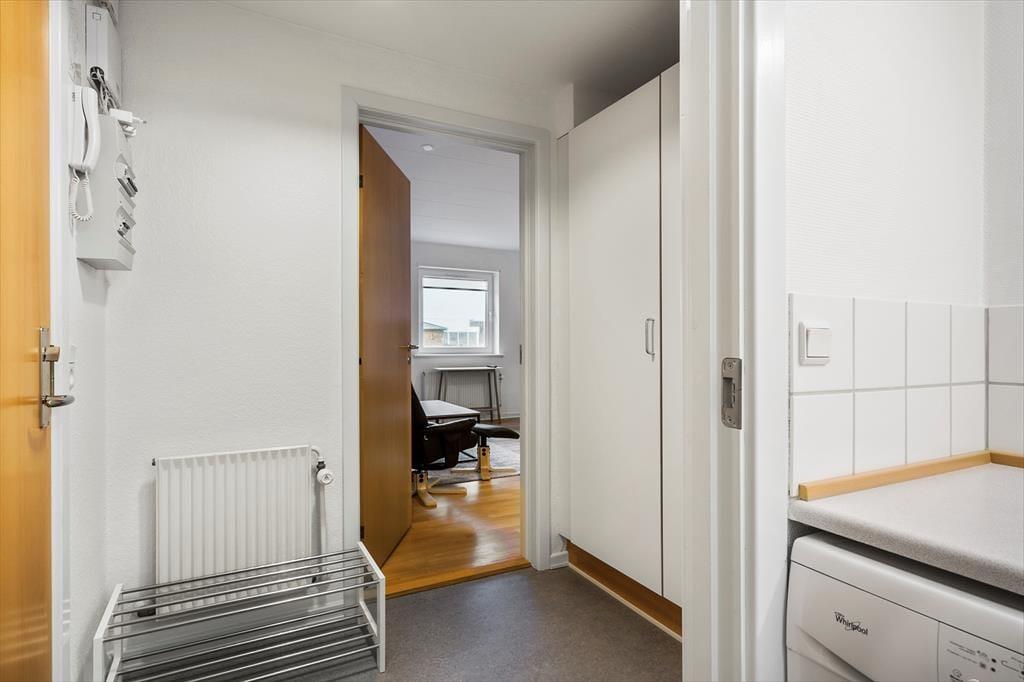 Ferielejligheden ligger på første sal i en ejendom med elevator, og den byder velkommen i en entré med plads til sko og overtøj. Badeværelset byder på bruseniche, og som en praktisk detalje er her også en vaskemaskine. Det rummelige soveværelse har god plads til to personer, og i stuen kan der redes op til to personer på sovesofaen. Sofaarrangementet er stedet, hvor I kan hygge med en god film eller bruge ferieboligens wi-fi, og stuen byder også på et spisebord. Køkkenet er funktionelt indrettet, og med opvaskemaskinen går afrydningen let som en leg.