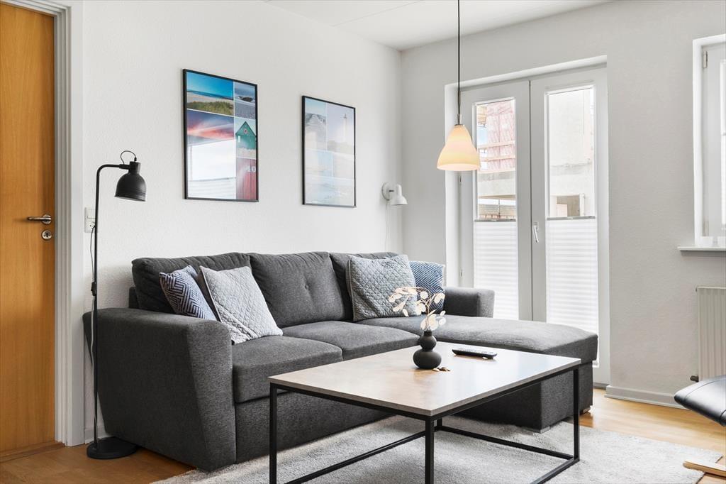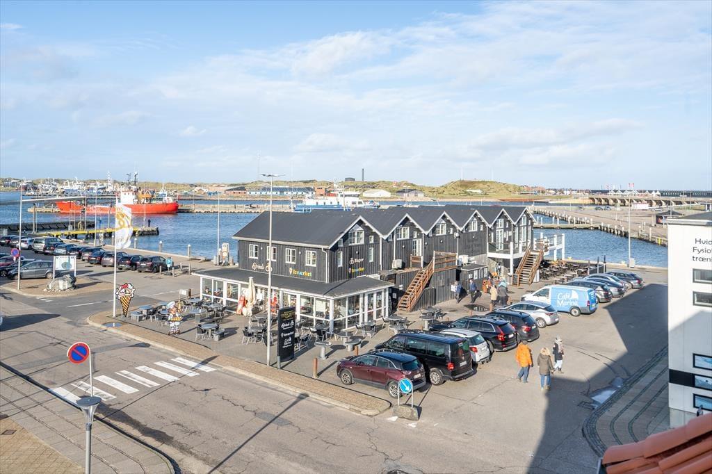 Ferielejligheden ligger i centrum af Hvide Sande, og I har det pulserende byliv og den stemningsfulde havn lige ved døren. Nærmeste dagligvarebutik ligger få skridt fra adressen, men skal det være nemt, har I også et væld af gode spisesteder at vælge imellem. Mamrelund og havnen byder på en autentisk maritim atmosfære, og ved Afvandingsslusen kan I kaste snøren ud efter fisk. Badestranden og Vesterhavets blå bølger finder I blot 850 meter fra døren, og her såvel som ved byens to surfspots på fjordsiden kan I stævne ud på windsurferen eller padleboardet. Hvide Sande er omgivet af Holmsland Klits spektakulære natur, og gode vandre- og cykelstier fører jer gennem de bakkede klitlandskaber.