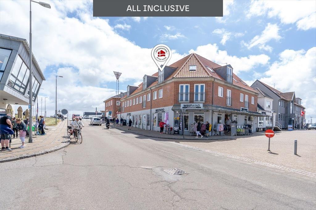 Ejendommen ligger midt imellem alle butikkerne i centrum og Hvide Sandes hyggelige havnemiljø, og I har et væld af hyggelige caféer og gode spisesteder at vælge imellem. Når sælerne viser sig i havnebassinerne, er der fisk i vandet, og så har I gode muligheder for at smide snøren ud og fange jeres egen aftensmad. De lokale fiskere lander frisk fisk fra fjorden og havet, og de gode fiskebutikker byder på lækre delikatesser. Har I cykler med, kan I tage på udflugt på Holmsland Klits gode cykelstier, der fører gennem den pragtfulde natur. Wind- og kitesurfere har fantastiske forhold både på fjorden og havet, og det samme gælder paddleboardere. Ved badestranden kan I krydre solbadning med en frisk dukkert i Vesterhavets blå bølger, og som lejere af denne ferielejlighed har I også gratis adgang til byens svømmehal.