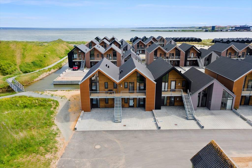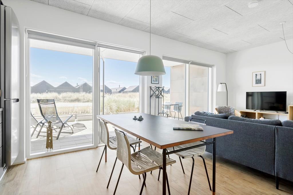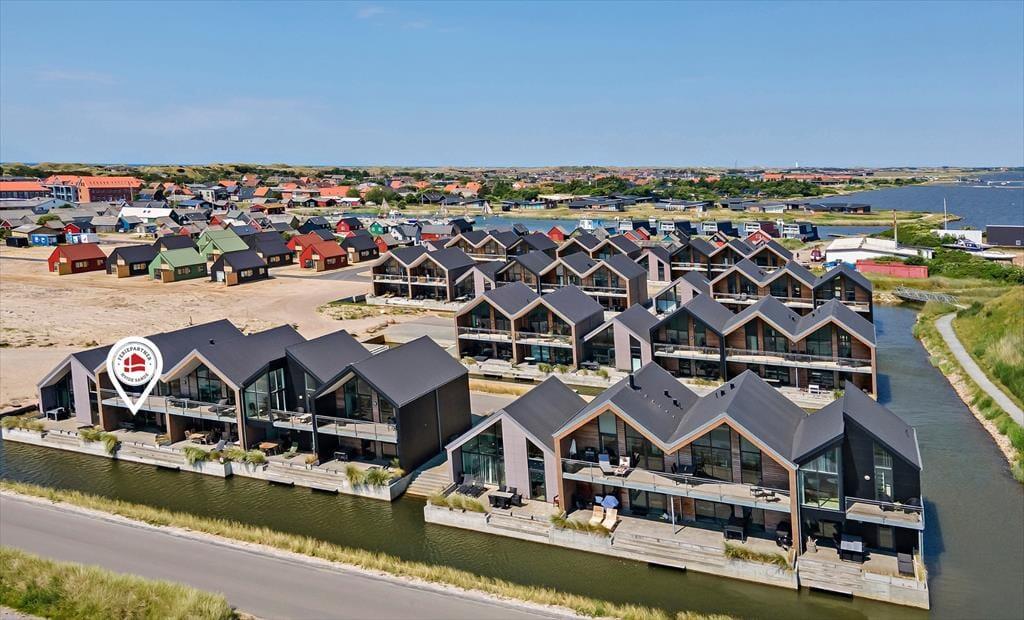 Langsand Langs Vand er en velfungerende, arkitekttegnet feriebebyggelse, der omkranses af et kanalsystem med direkte forbindelse til Ringkøbing Fjord. Selve fjorden ligger bare 75 meter væk, og I har kort afstand til den charmerende Tyskerhavn, så hvis I vil starte dagen med en gåtur i strandkanten, kan det nemt lade sig gøre. Hvis I medbringer SUP-board, surfgrej eller kajak, kan I også tage en tur ud på vandet, og fiskestangen kan oplagt tages i brug på en af Hvide Sandes mange fiskepladser. Fra lejligheden har I kort gåafstand til byens hyggelige centrum, og I kan også gå til byens skønne sandstrande ud mod Vesterhavet.