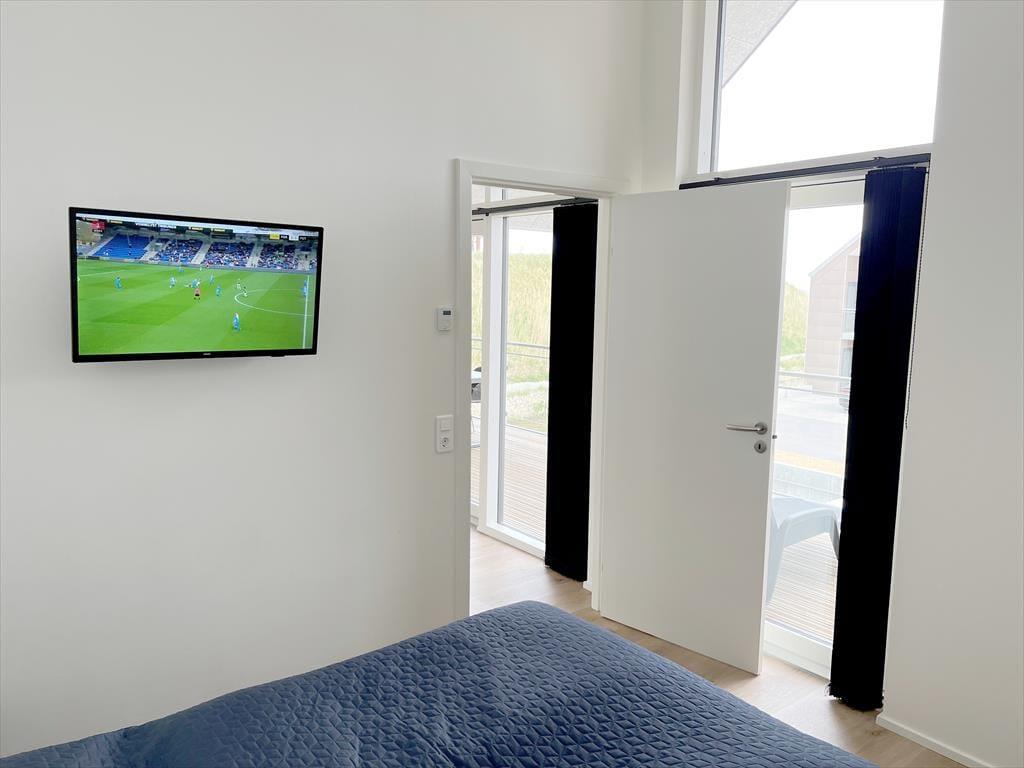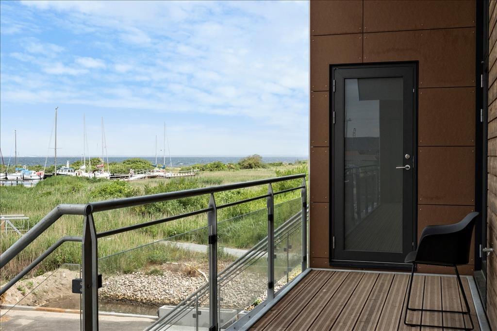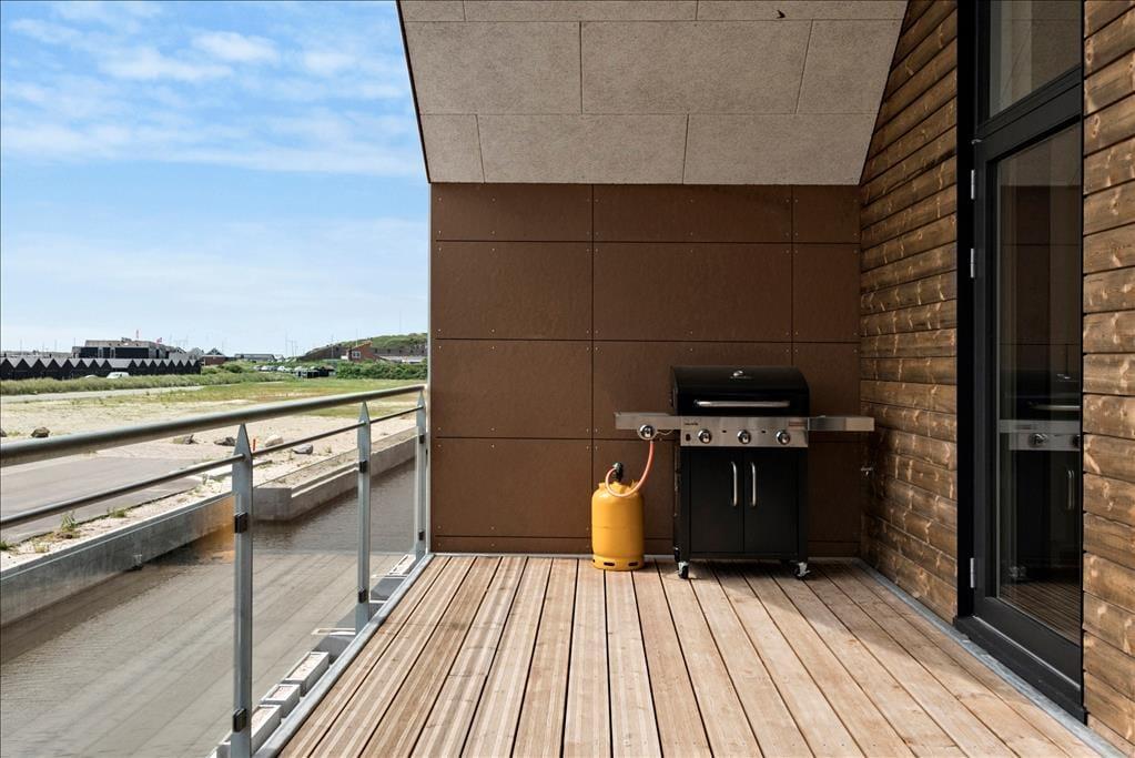 Fra opholdsafdelingen har I direkte adgang til en stor, overdækket altan, hvor I kan grille, slappe af i liggestolene og nyde det rolige ferieliv. Altanen er sydvendt og derfor dejligt solrig, og heroppe fra første sal har I frit udsyn ud over kanalerne. På lejlighedens anden altan kan I sætte jer for at nyde aftensolen og udsigten til lystbådehavnen og Ringkøbing Fjord. For foden af trappen er der en parkeringsplads, der hører til lejligheden.