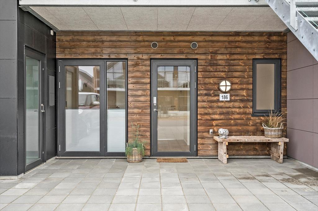 Vil I gerne bo tæt på vandet, kan I glæde jer over, at lejligheden ligger lige ud til en kanal. En del af den sydvendte terrasse er anlagt som en trappe, så I kan sætte jer helt tæt på de vuggende bølger – eller begive jer ud på vandet, hvis I har medbragt SUP-board. En siesta i liggestolene eller en solbeskinnet frokost kan også sagtens komme på tale på den store terrasse, og hvis I trænger til luftforandring, kan I rykke om på den anden side af ejendommen, hvor I også har plads til at parkere bilen.