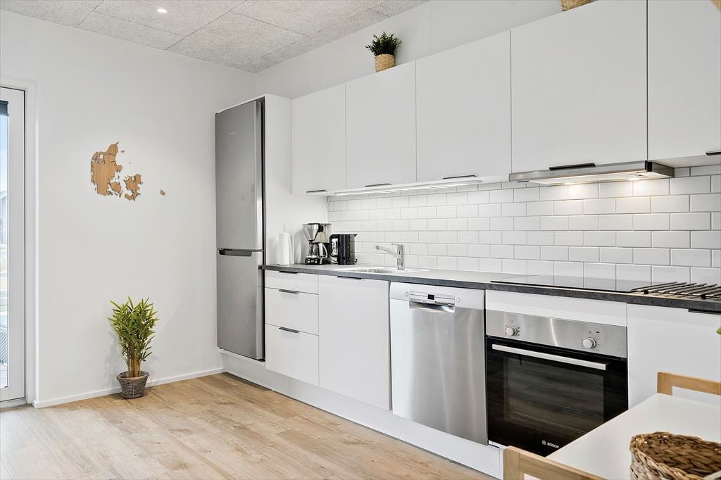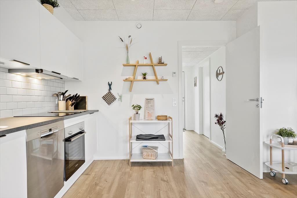 Med sin gennemtænkte planløsning og gode udnyttelse af alle 50 m2 er lejligheden perfekt udformet til to voksne –og der er også plads til to børn, for stuens sofa er en sovesofa. Lejligheden ligger i stueplan i en flot ejendom fra 2021, og den er udstyret med alt det nødvendige for at holde en god ferie. Har I købt frisk fisk eller andre lækkerier med hjem, kan I gå i gang med at kokkerere i det veludstyrede køkken, der også byder på en airfryer. Om aftenen kan I se film og serier på stuens fladskærms-tv, hvis ikke I hellere lade tankerne vandre og nyde udsigten til vandet, der vugger blidt i feriebyens kanaler. Badeværelset er med bruser, gulvvarme og kombi-vaskemaskine, og fra soveværelset har I direkte adgang til det fri, hvis I vil indånde Hvide Sandes friske havluft lige fra morgenstunden.
