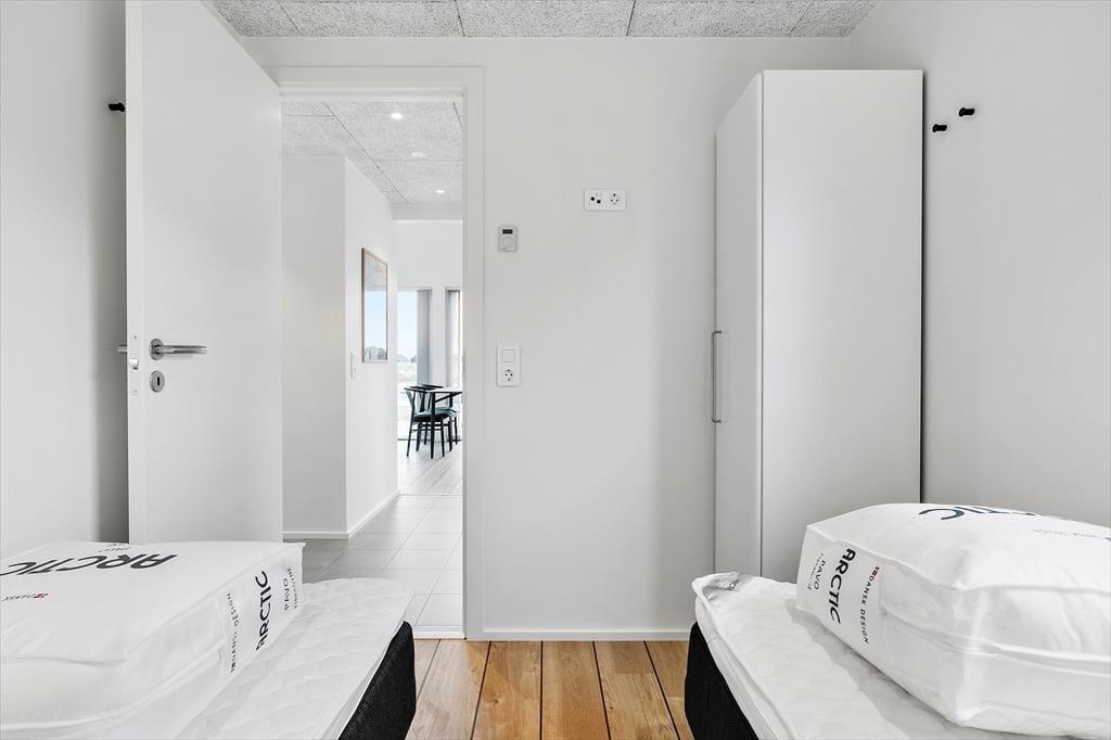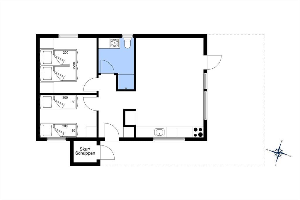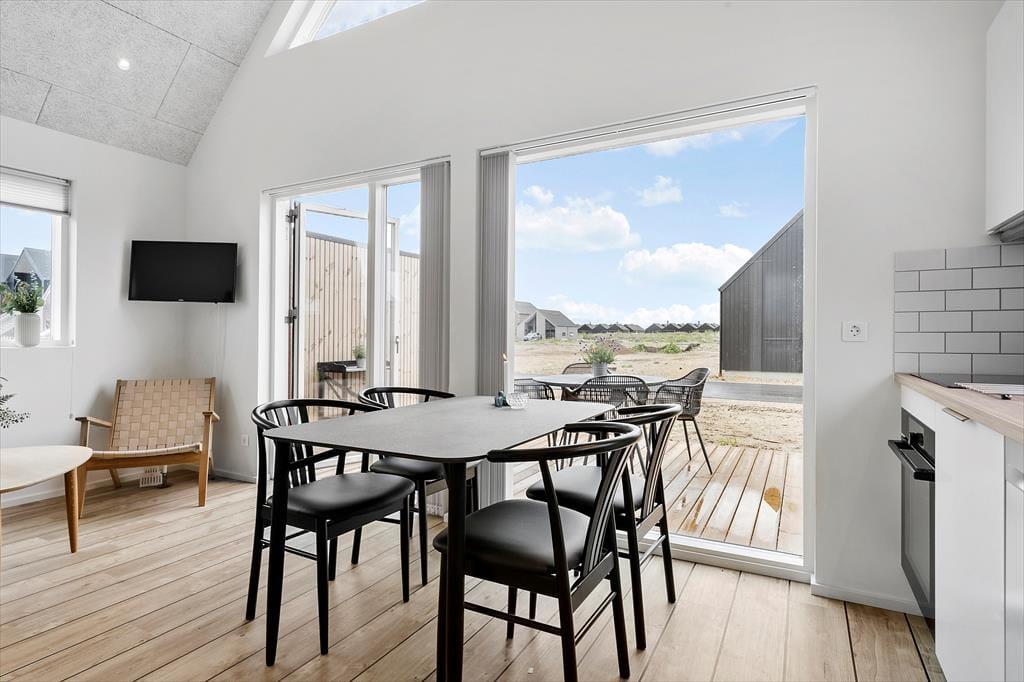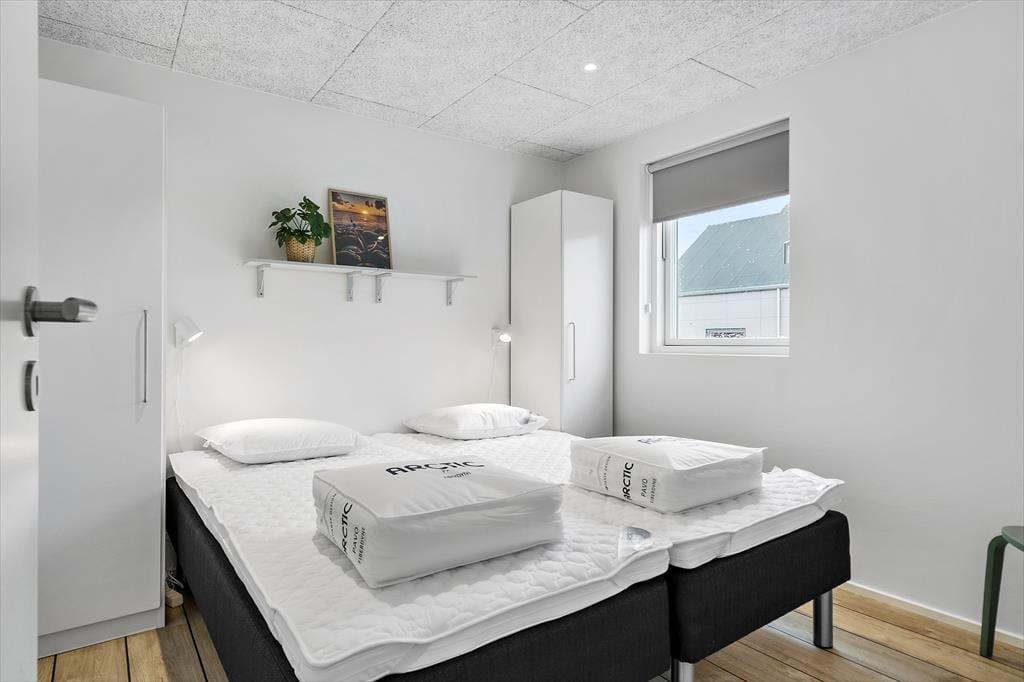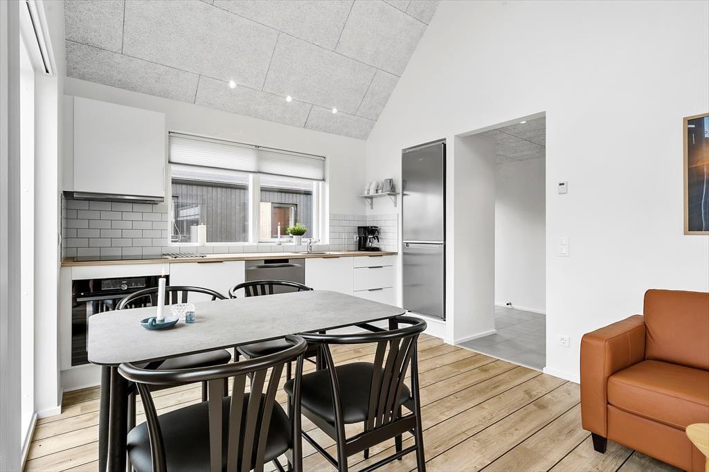 Sommerhuset er blevet opført i 2022, og det er efterfølgende blevet indrettet på lys og indbydende vis. Med sine 50 m2 er det ikke et af de største på markedet, men med to soveværelser, et brusebadeværelse og en stue med integreret køkken er planløsningen perfekt til fire personer. Og hvem har også brug for mere plads, når målet med ferien er at hygge sig i ro og mag med gode bøger, brætspil og lækre måltider? Til den slags formål er stuen det helt rette opholdssted – og her kan I for øvrigt se tv og film på fladskærmen, der har Kabel TV Chromecast tilsluttet. Derudover kan det nævnes, at der er gulvvarme overalt i huset, og slutrengøring, linned og forbrug er inkluderet i lejeprisen.
