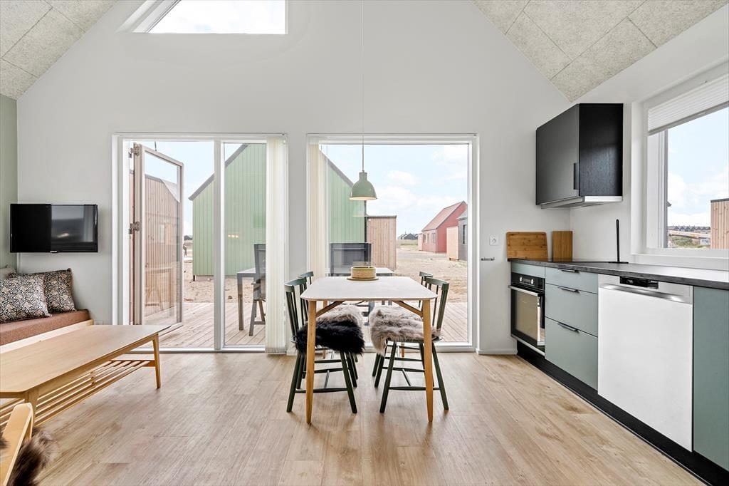 I kan straks begynde at glæde jer til at holde ferie i dette moderne og velindrettede sommerhus i Hvide Sande. Det hører til den charmerende, farvestrålende og nyopførte bebyggelse Langsand Langs Sand, der ligger bare 150 meter fra Ringkøbing Fjord og i bekvem gåafstand til Vesterhavet.
