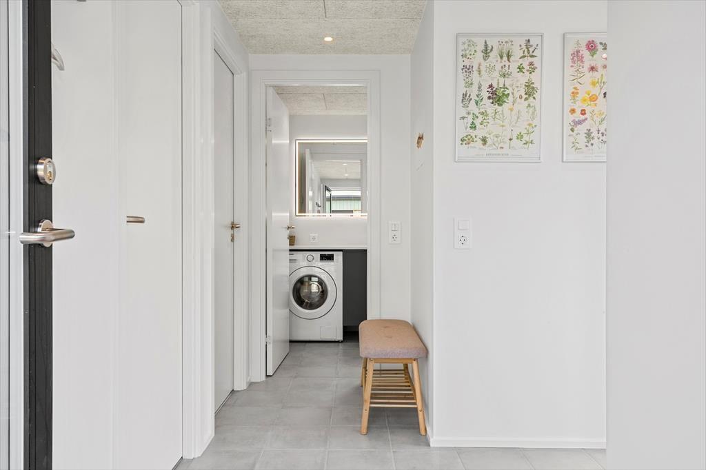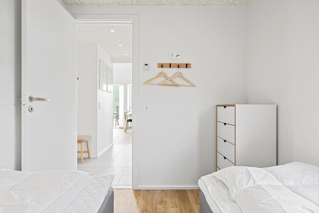 Med en gennemtænkt planløsning, der udnytter hver eneste af husets 50 m2, kan I nemt holde ferie fire personer sammen. Husets ene soveværelse er med dobbeltseng og det andet med to enkeltsenge, og badeværelset er praktisk indrettet med bruseniche samt vaskemaskine og tørretumbler. Alle rum fremstår lyse, luftige og lækre – ikke mindst stuen, som har integreret køkkenafdeling, loft til kip og stilfuldt interiør. Fra stuen har I direkte adgang til terrassen, hvilket især er rart om sommeren. Og holder I ferie på andre tider af året, kan I nyde, at der er gulvvarme overalt i huset.