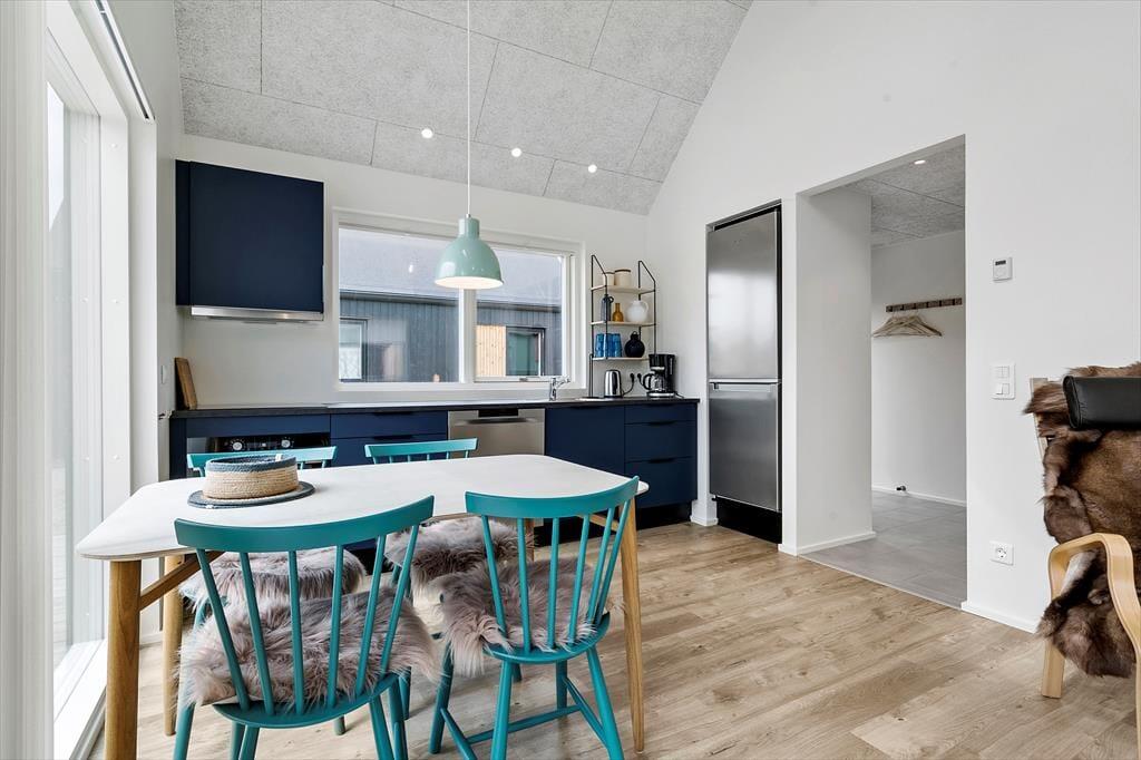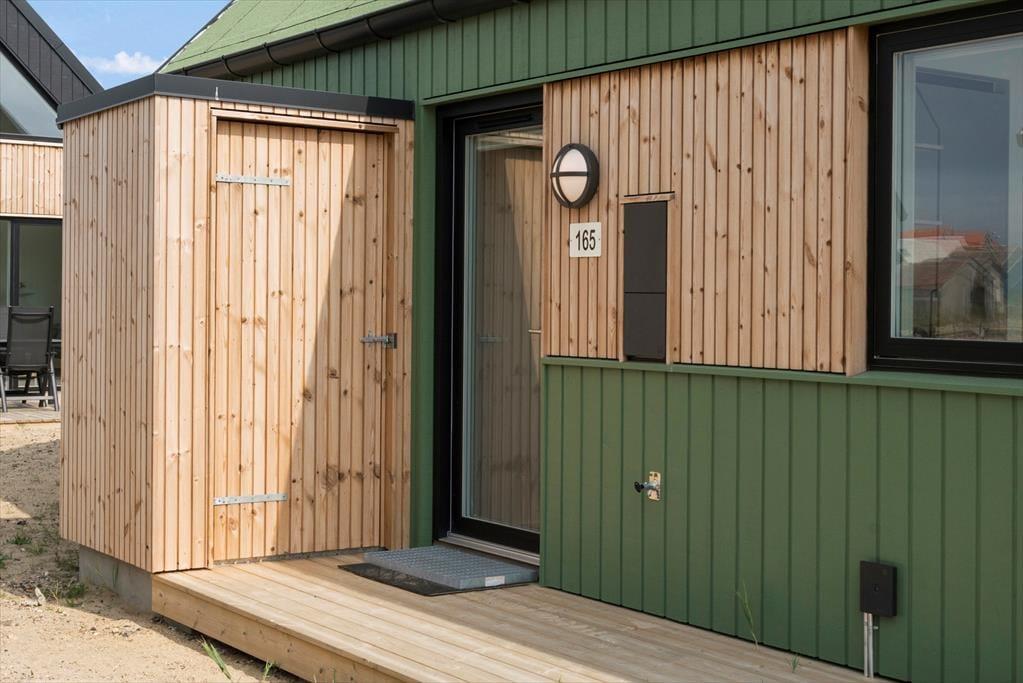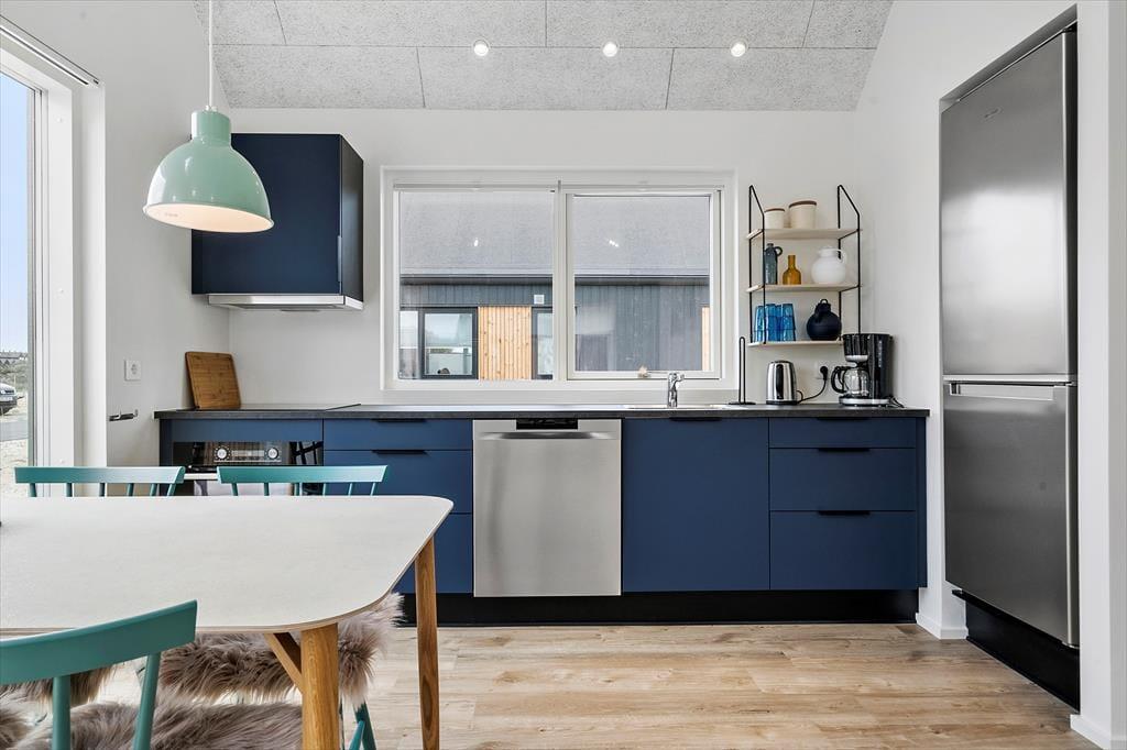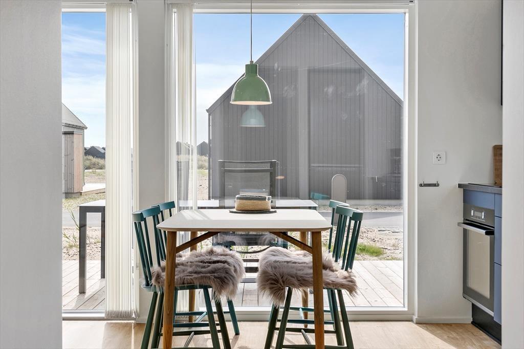 Sommerhuscharmen kan tydeligt mærkes, så snart I nærmer jer adressen, for huset ligger i en samling af farvestrålende, nyopførte ferieboliger. Langsand Langs Sand er opført i 2022, og netop dette eksempel byder jer velkommen på 50 velindrettede kvadratmeter inde bag den grønmalede træfacade. Planløsningen passer perfekt til fire personer med to soveværelser, et brusebadeværelse og en dejlig stue med integreret køkkenafdeling. Overalt er der gulvvarme, og det er med til at understrege den behagelige rumfornemmelse inden døre. En anden rar detalje er, at alt forbrug er inkluderet i prisen – og det samme er slutrengøring og linned. Så er der det mindre at tænke på, og tiden kan I stedet bruges på at nyde ferien i fulde drag.
