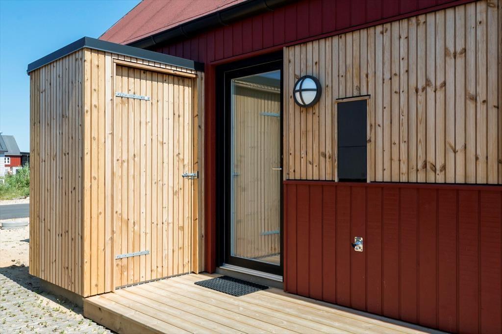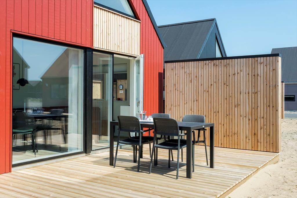Sommerhuset ligger som del af Langsand Langs Sand, hvilket er en samling af farvestrålende kvalitetshuse, der passer perfekt ind i den maritime stemning. Netop dette eksemplar lyser op med sin røde træfacade, og de store vinduer sørger for, at dagslyset bliver inviteret indenfor. Stuen er et velindrettet opholdsrum med fladskærms-tv og stilfuldt møblement, der passer godt til den moderne arkitektur. Et veludstyret køkken ligger i åben forbindelse, så madlavningen kan flettes sammen med den øvrige feriehygge. Og når det er ved at være sengetid, kan I se frem til en god nats søvn på de to soveværelser, hvoraf et er med dobbeltseng og det andet med to enkeltsenge. Alle rum, inklusiv det flotte brusebadeværelse, har indlagt gulvvarme – og i den forbindelse kan det nævnes, at ikke kun slutrengøring og linned, men også forbrug er inkluderet i lejeprisen.