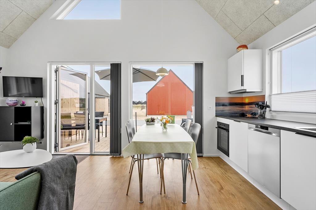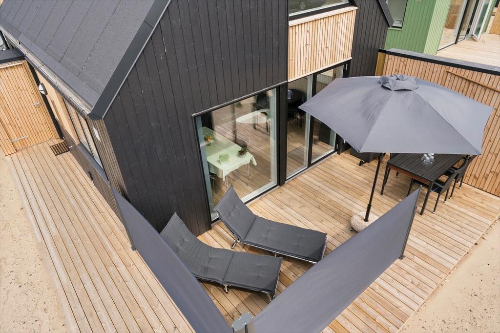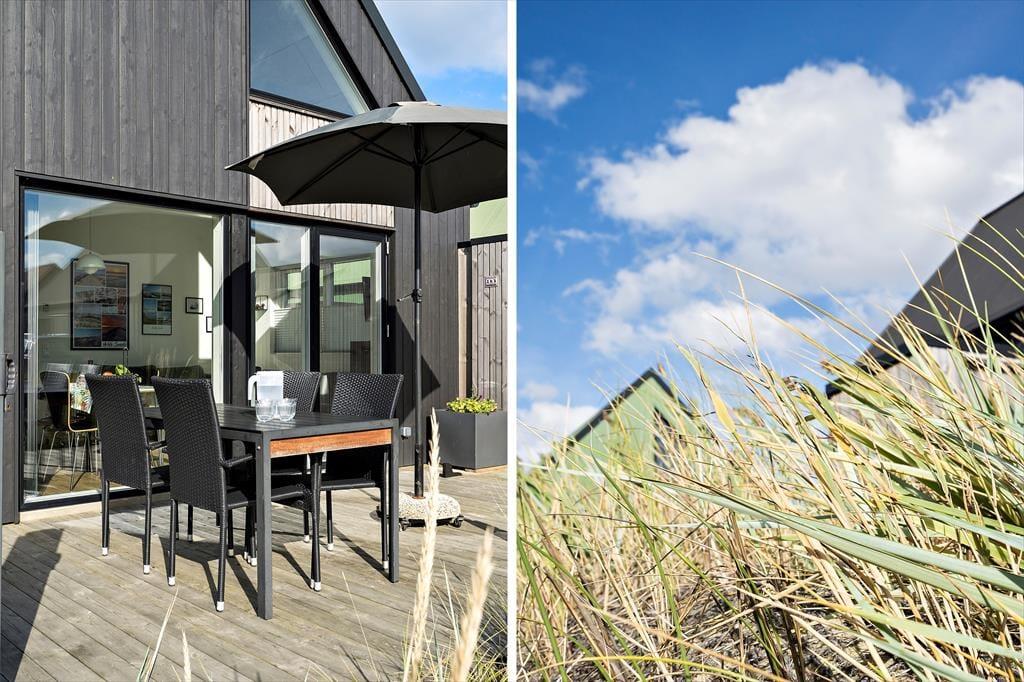 Dette moderne feriehus i Hvide Sande står klar til at byde jer velkommen i lyse og lækre rammer. Syd og vest for huset breder en dejlig træterrasse sig – og når I vil ud på eventyr, har I bare 150 meter til Ringkøbing Fjord og gåafstand til Vesterhavet og Hvide Sande havn.