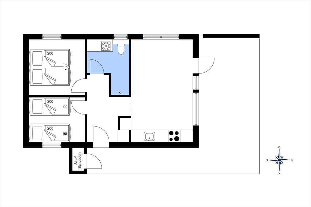 Ude i det fri er der taget højde for feriegæsternes forskellige behov, for der er både en parkeringsplads til bilen og et dejligt opholdsareal, hvor I kan nyde solen. Syd og vest for sommerhuset breder den 28 m2 stor træterrasse sig, og her har I havemøbler, liggestole og en grill til rådighed, så I kan se frem til mange dejlige stunder i solen.