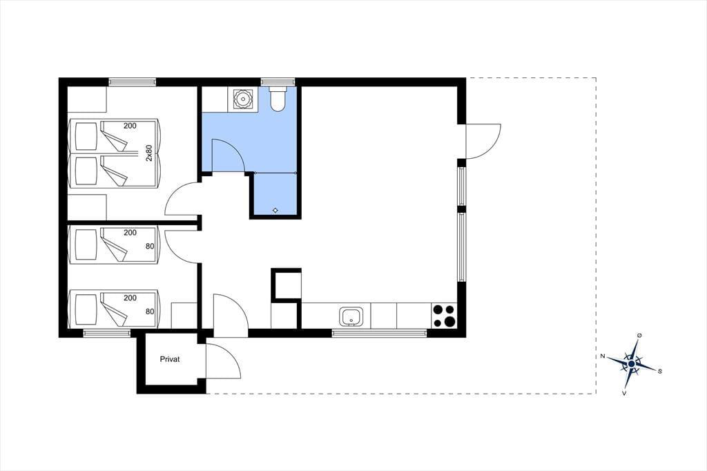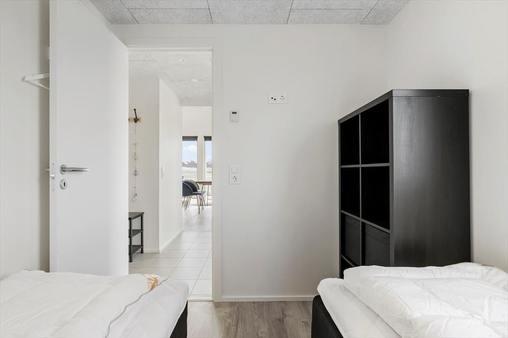 Som man kan forvente af en moderne feriebolig fra 2022, er der tænkt over komforten og den gode rumfornemmelse inden døre. Husets 50 m2 er optimalt udnyttet, og med to soveværelser, et badeværelse samt stue og åbent køkken er planløsningen helt perfekt til fire personer. Det veludstyrede køkken er integreret med stuen, og her sørger den gode loftshøjde og de store vinduer for en lys og indbydende atmosfære. Når I ikke hygger jer her omkring spisebordet eller i sofaafdelingen, kan I se frem til at sove længe på de to gode soveværelser, hvoraf et er udstyret med dobbeltseng og det andet med to enkeltsenge. Overalt i huset er der gulvvarme, og i den forbindelse kan det bemærkes, at ikke bare forbrug af el, vand og varme, men også slutrengøring og linned er inkluderet i prisen.