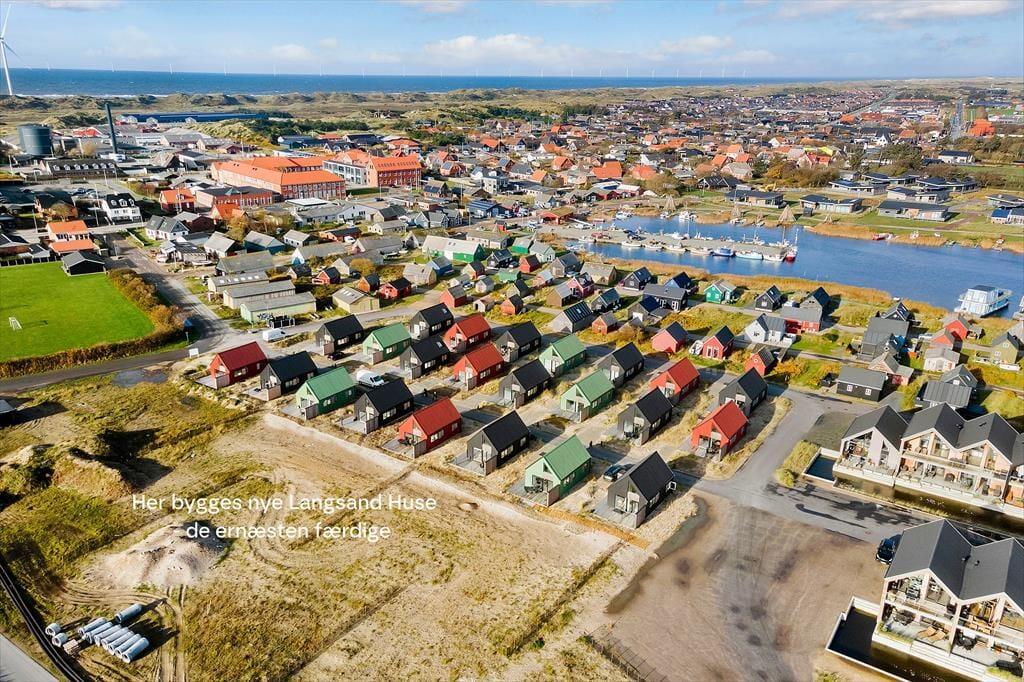 Sommerhuset er et af de farverige og charmerende huse, der går under navnet Langsand Langs Sand. Bebyggelsen er placeret meget tæt på Tyskerhavnen og Hvide Sande Lystbådehavn, og fra huset tager det kun et par minutter at gå til bredden af Ringkøbing Fjord. Omgivelserne er med andre ord stemningsfulde og naturskønne, og samtidig har I nem adgang til Hvide Sandes gode udvalg af supermarkeder, spisesteder og butikker. Vesterhavet kan I også hurtigt nå frem til, hvis I vil have en dukkert, lege i sandet eller gå en lang blæsevejrstur langs med kysten.