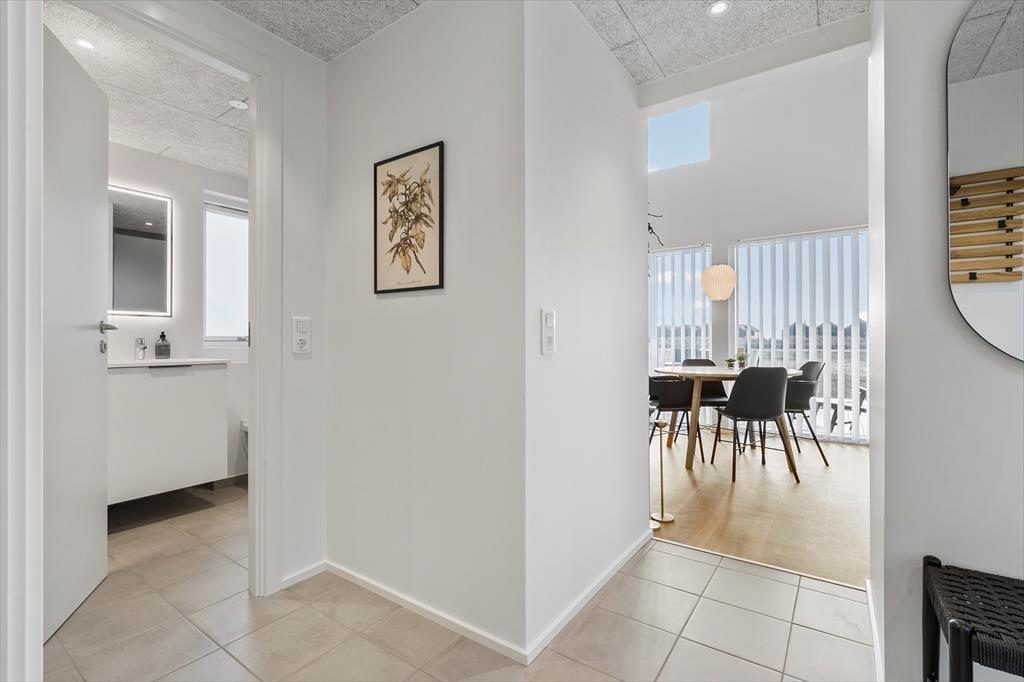 På de solrige dage er det oplagt at sætte sig ud på terrassen for at nyde det gode vejr og Hvide Sandes friske luft. Træterrassen, der ligger syd og vest for huset, måler 28 m2, så I har god plads til at flade ud i liggestolene eller lægge an til en skøn grillmiddag sidst på dagen. Ved huset er der en p-plads, og for elbil-ejere er det smart, at bilen kan oplades på adressen mod betaling.