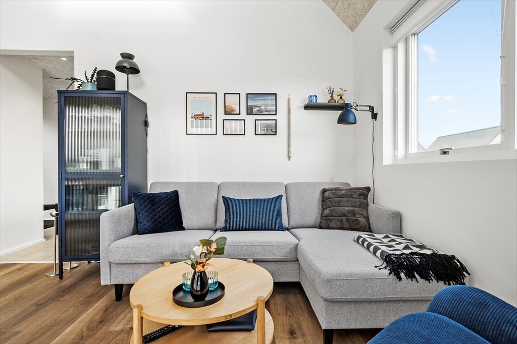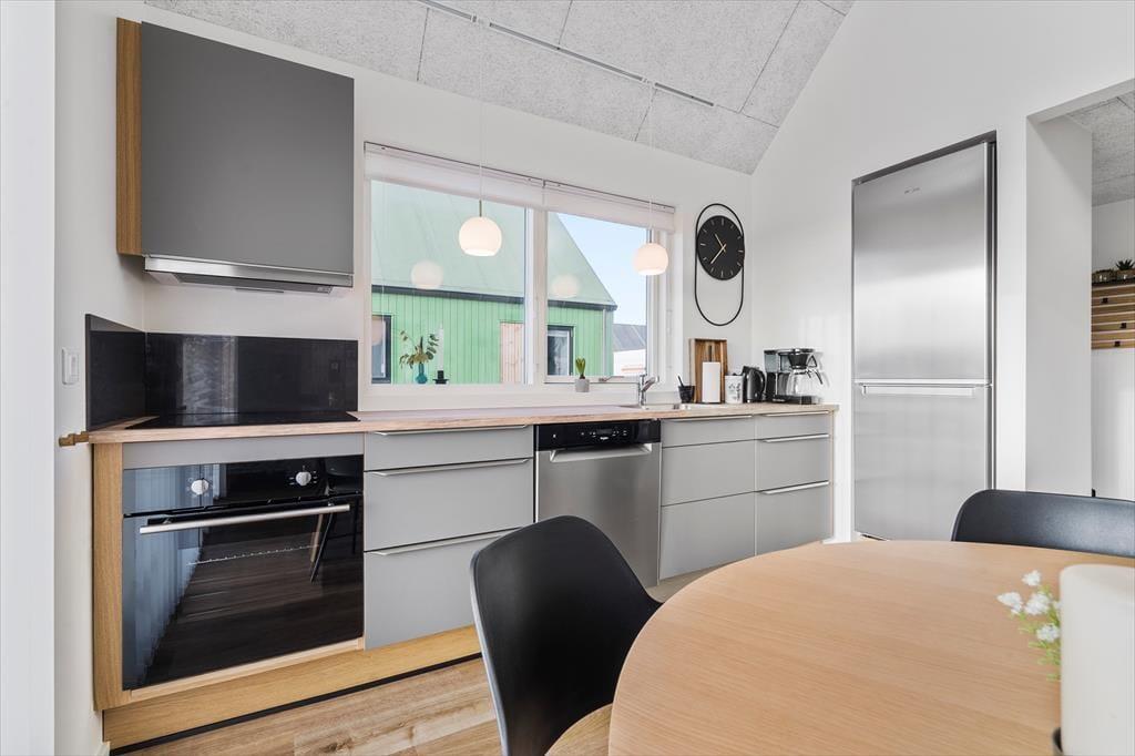 Det er formentlig kun en del af ferien, der kommer til at foregå væk fra sommerhuset – og heldigvis for det, for huset er nemlig en lille perle med sin charmerende arkitektur og dejlige atmosfære. Ligesom de omkringliggende ejendomme minder det udefra om et klassisk fiskerhus, og inden døre er det lyst og indbydende, præcis som det kan forventes af et moderne byggeri. Planløsningen består af to gode soveværelser, et badeværelse og en entré foruden stuen, der har åbent køkken, loft til kip og havedør ud mod terrassen. Kort sagt har I alt, hvad I skal bruge for at lave mad, sove længe, slappe af og hygge jer på allerbedste vis.